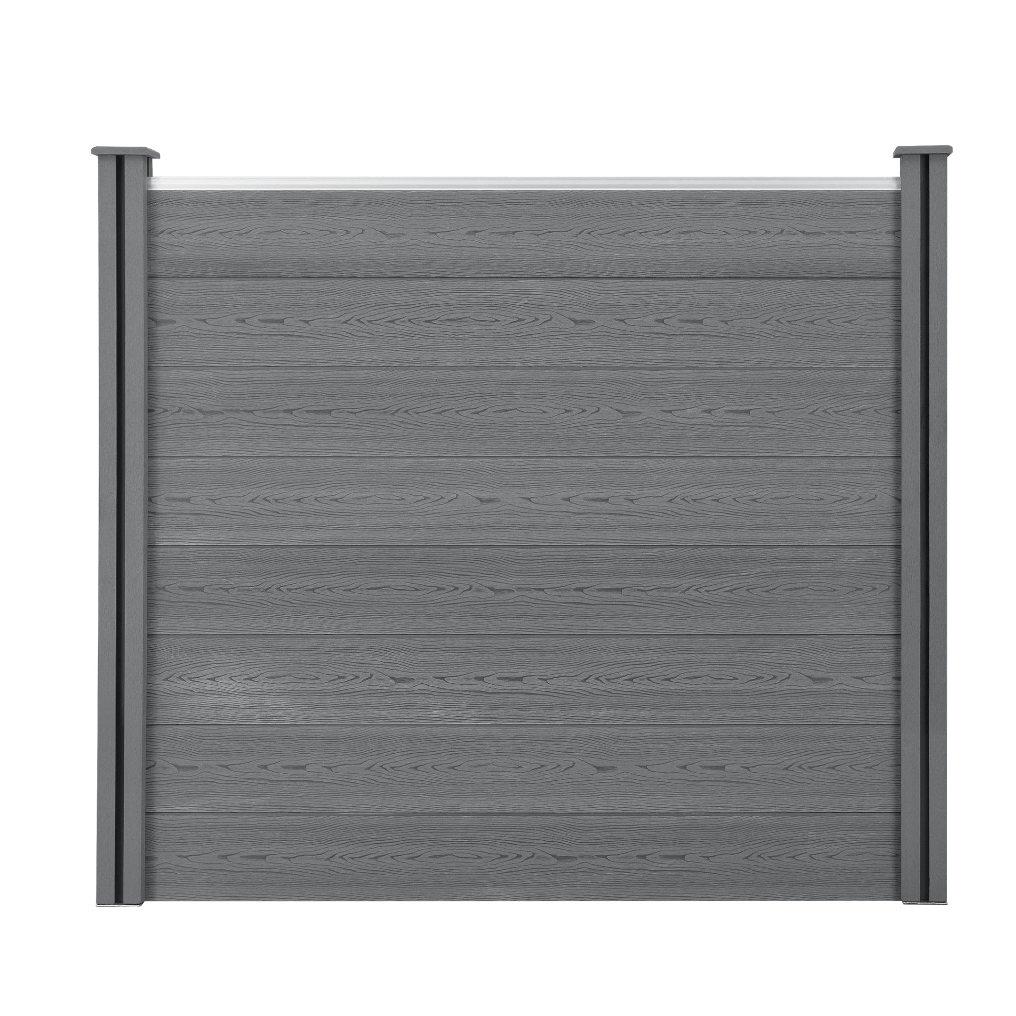Clôture de jardin brise-vue avec 2 poteaux planches bois composite wpc 165 x 162 cm gris 03_0006580
