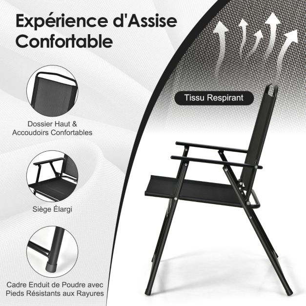 Dimensions dépliées de chaque chaise : 53 x 62 x 89,5 cm (L x l x h)
