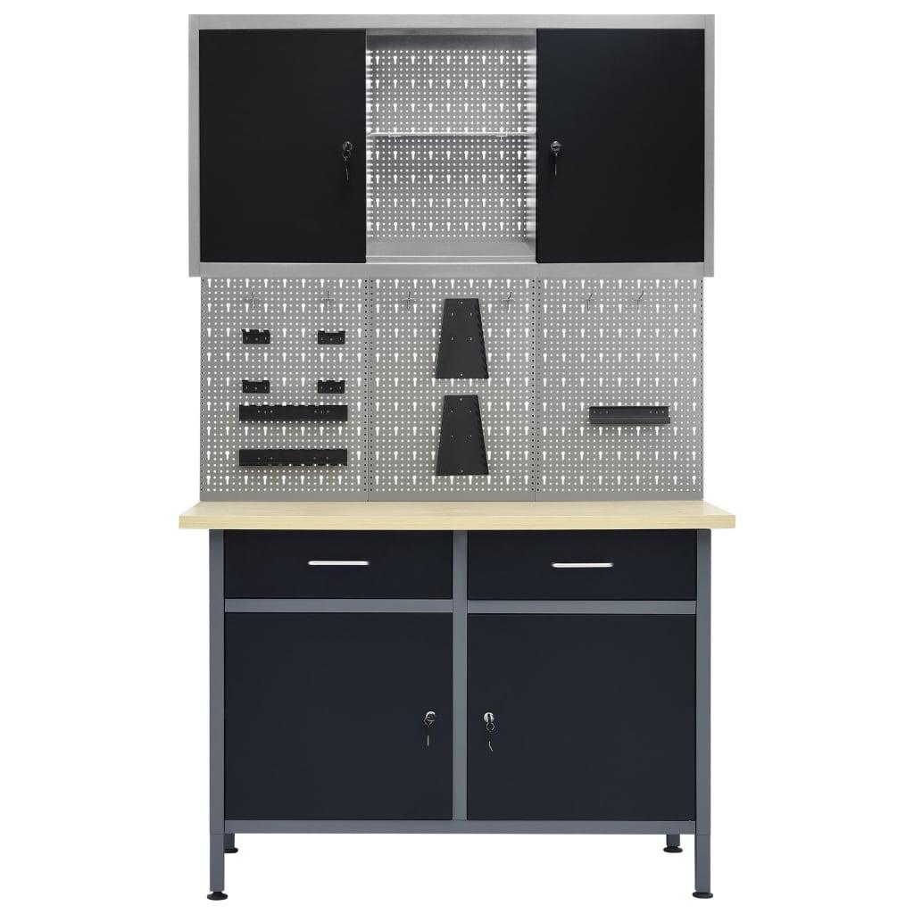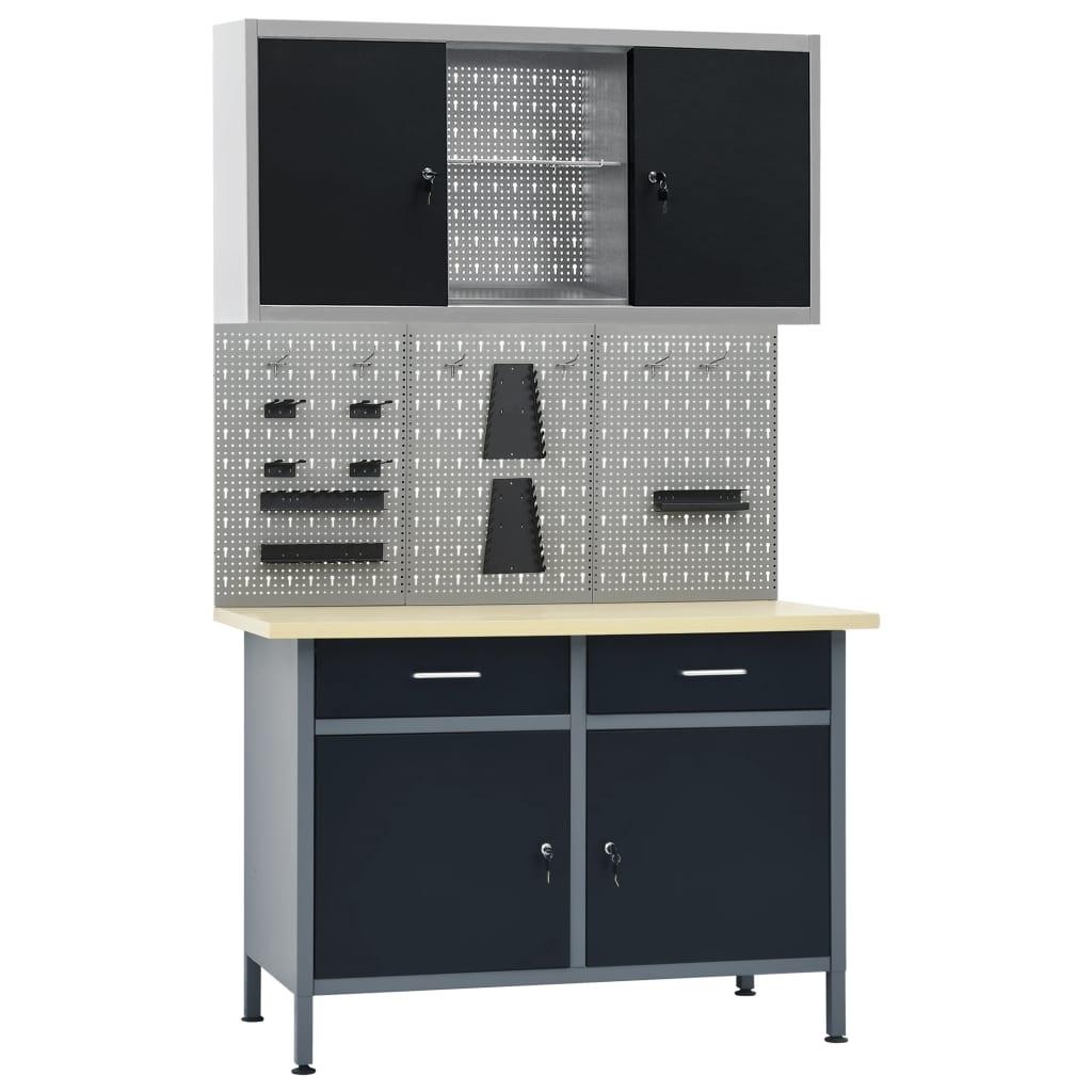 Etabli 120 cm avec 3 panneaux muraux et 1 armoire atelier table de travail gris noir 02_0003661