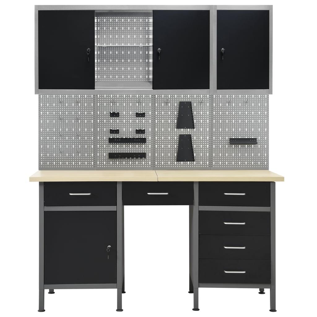 Etabli et 4 panneaux muraux et 2 armoires table de travail poste de travail stockage rangement d'outils etabli d'atelier garage 02_0003669