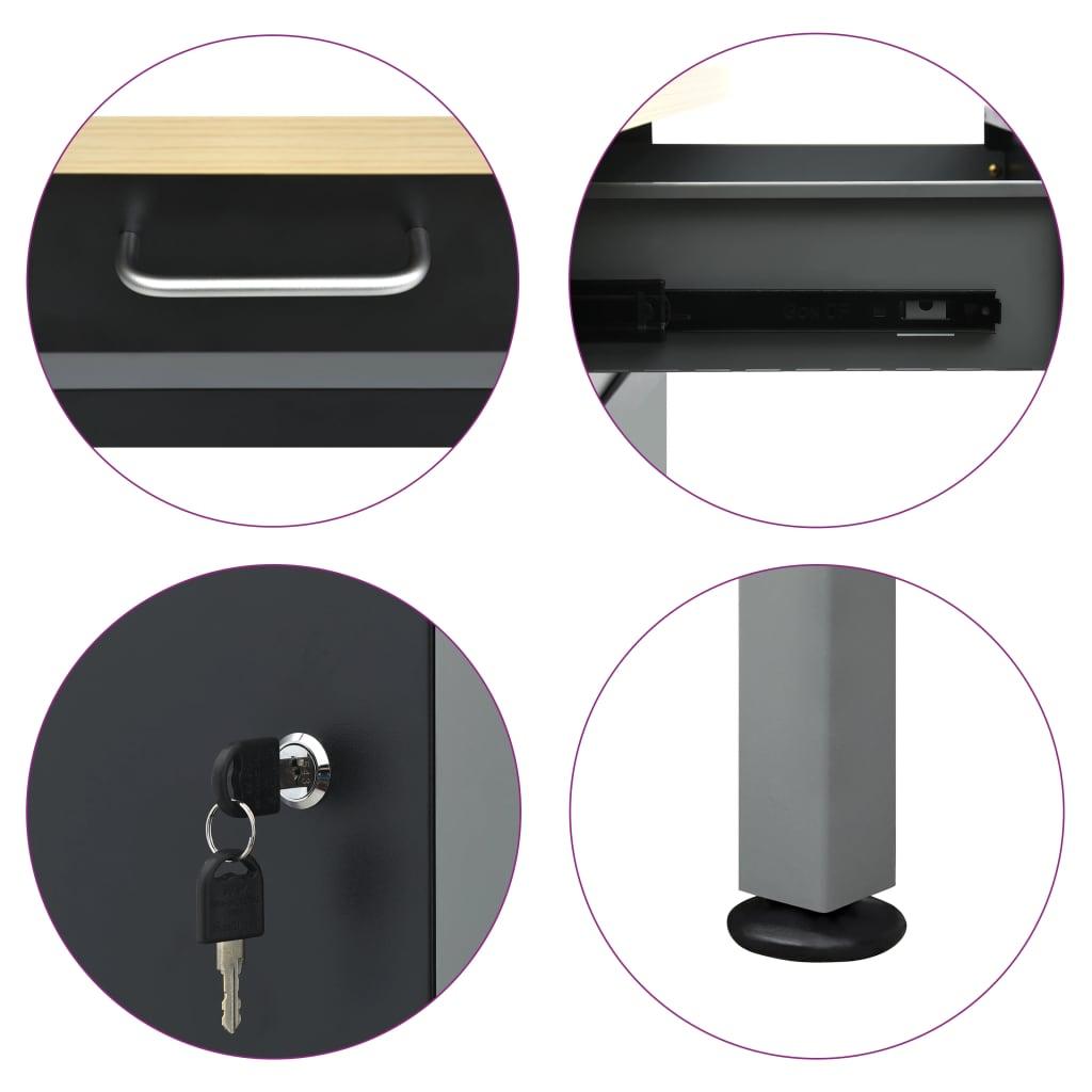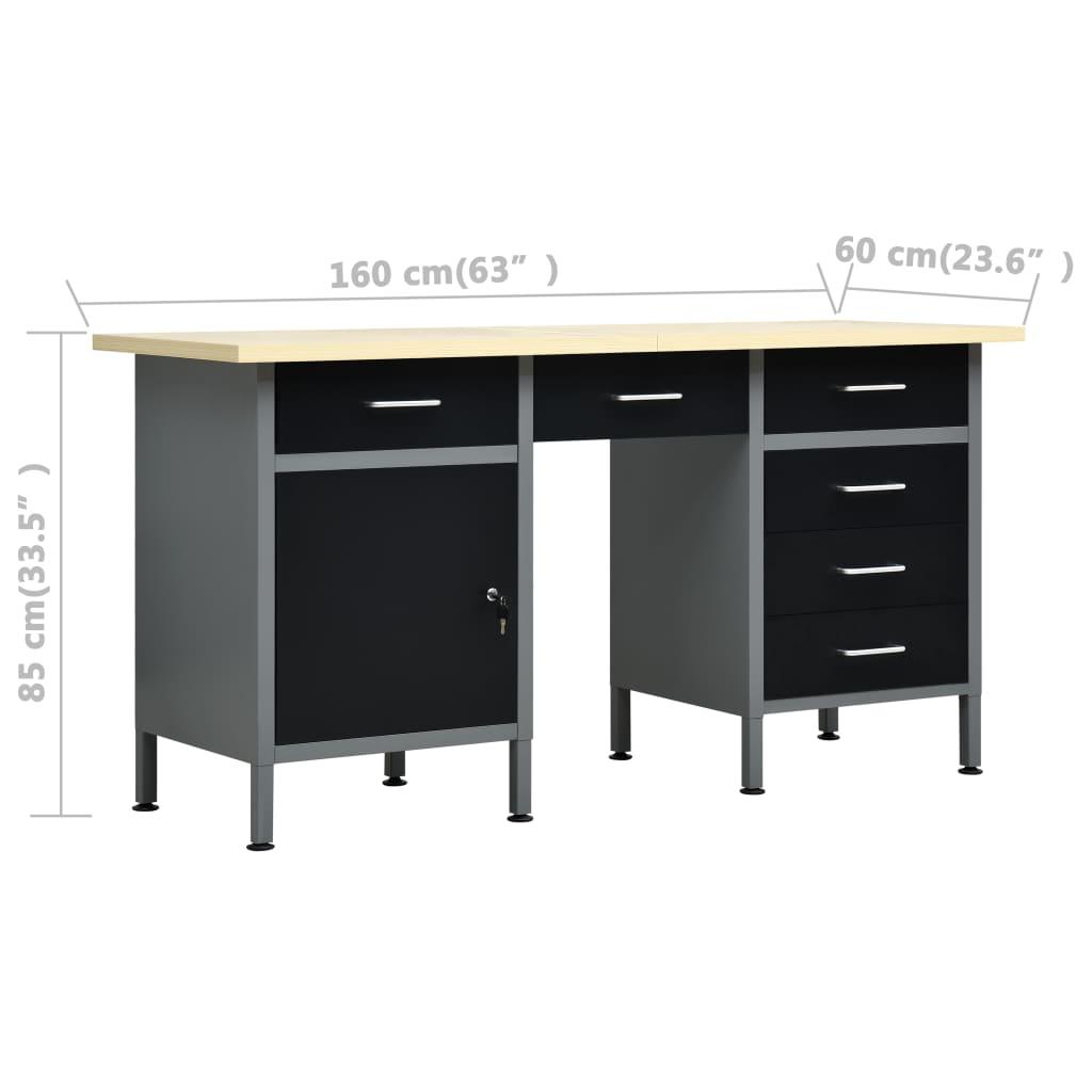Etabli noir 160 cm avec tiroirs acier table de travail bricolage outils gris noir 02_0003679
