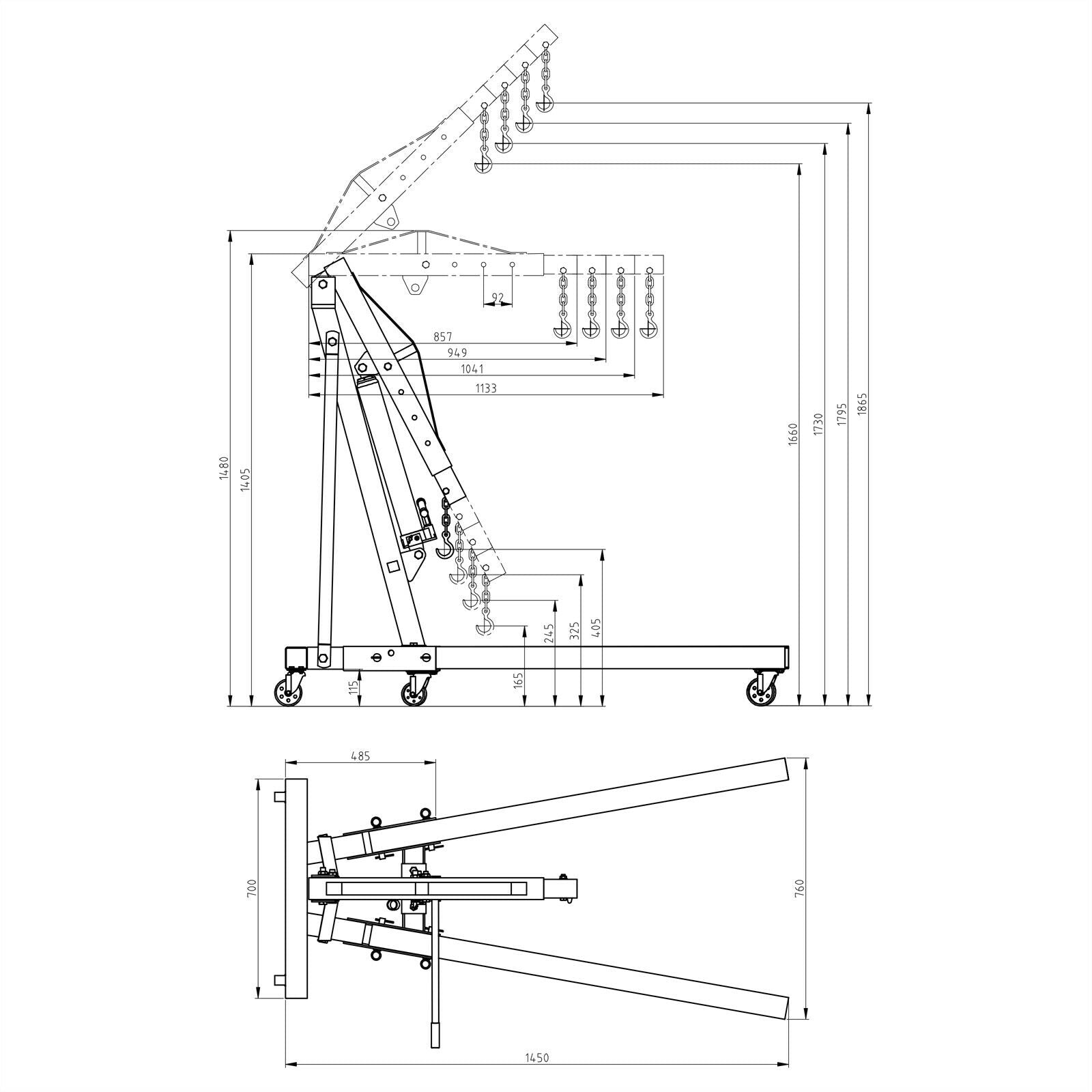 Par ailleurs et étant donné que la grue d‘atelier est pliable, vous pouvez la ranger et stocker dans les plus petits espaces.