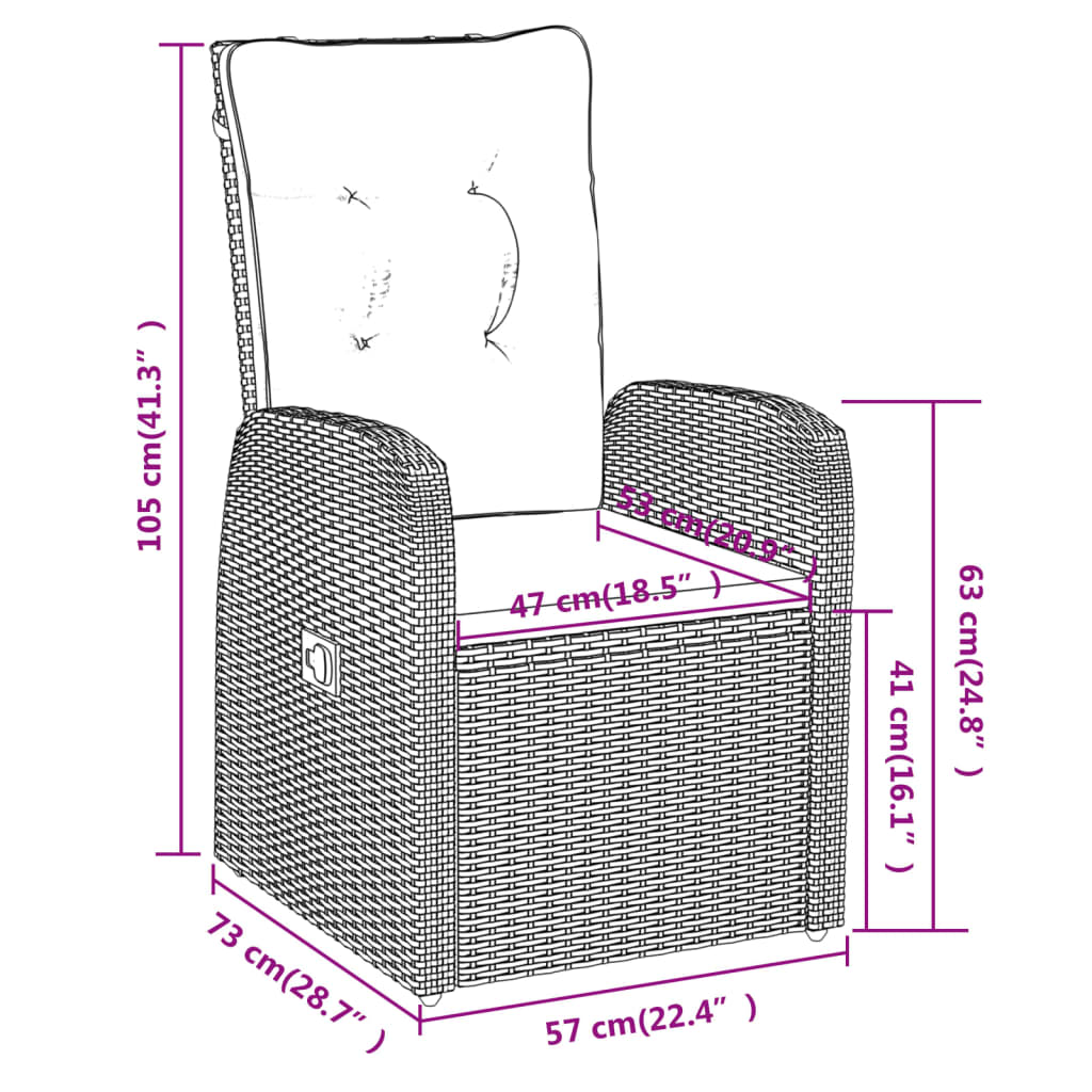 Dimensions de la chaise (lorsqu'elle n'est pas inclinée) : 57 x 73 x 105 cm (I x P x H)