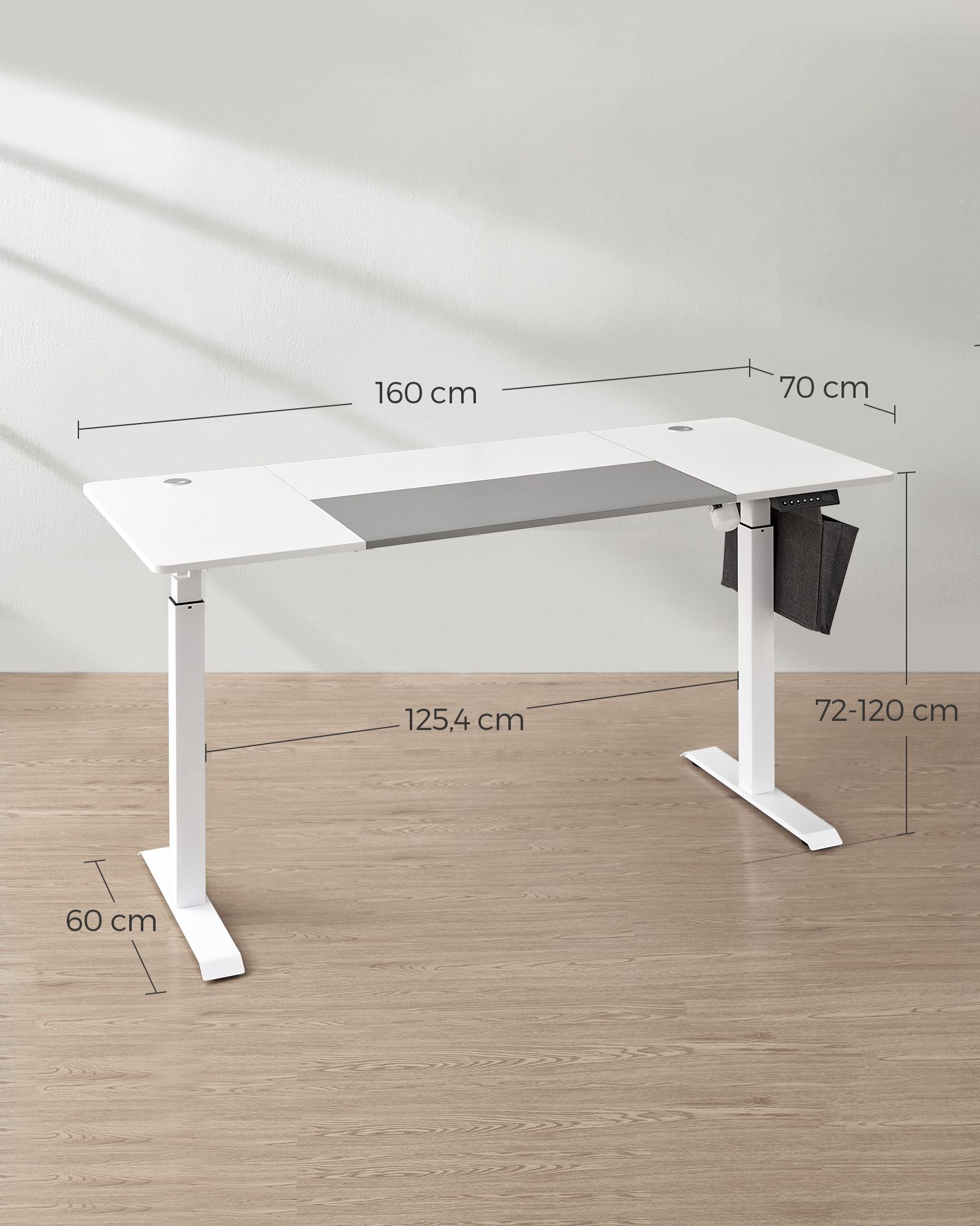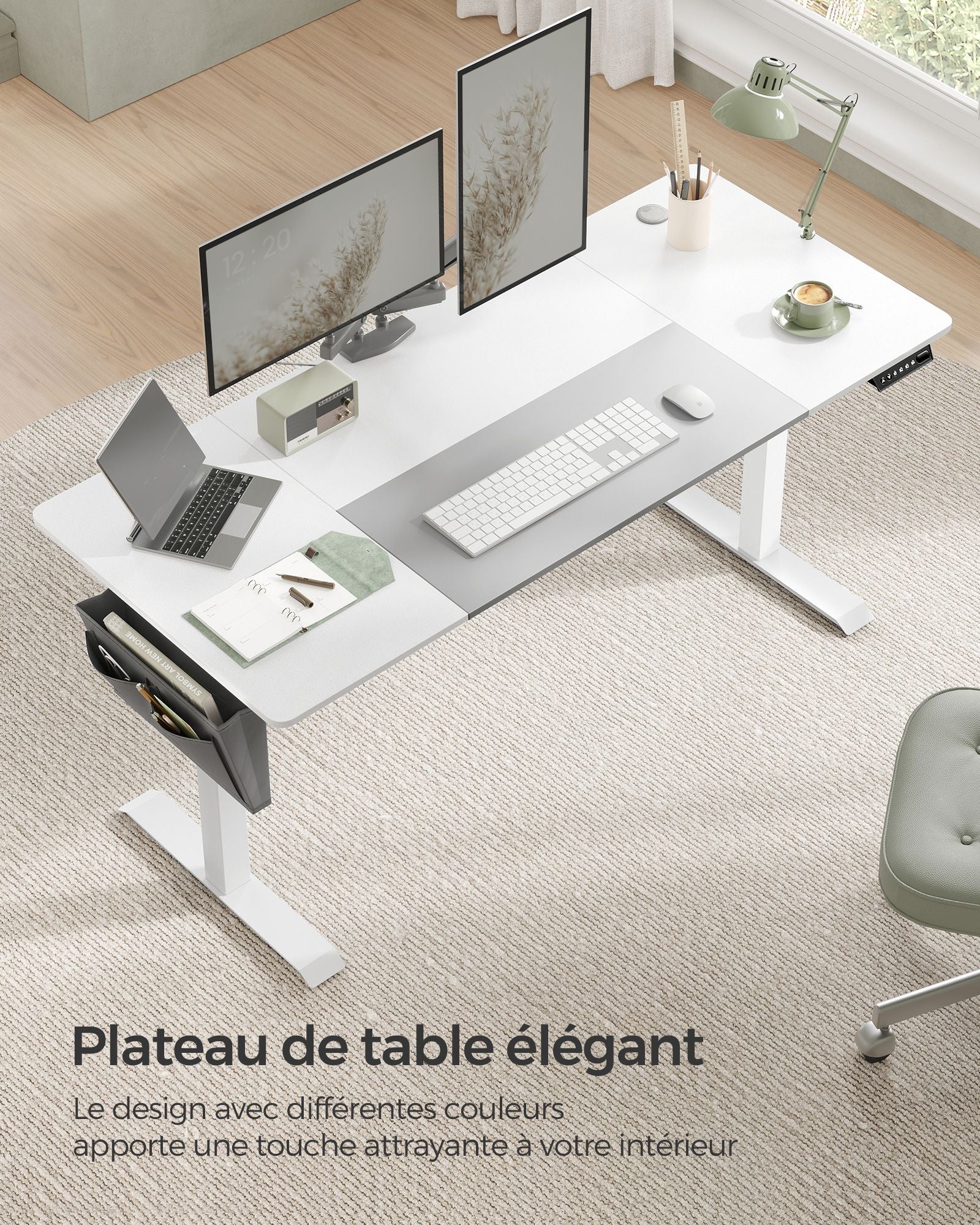 Bureau assis debout électrique 70 x 160 x (72-120) cm table réglable en hauteur mémoire 4 hauteurs pochette cadre en acier dessus épais blanc 12_0004549