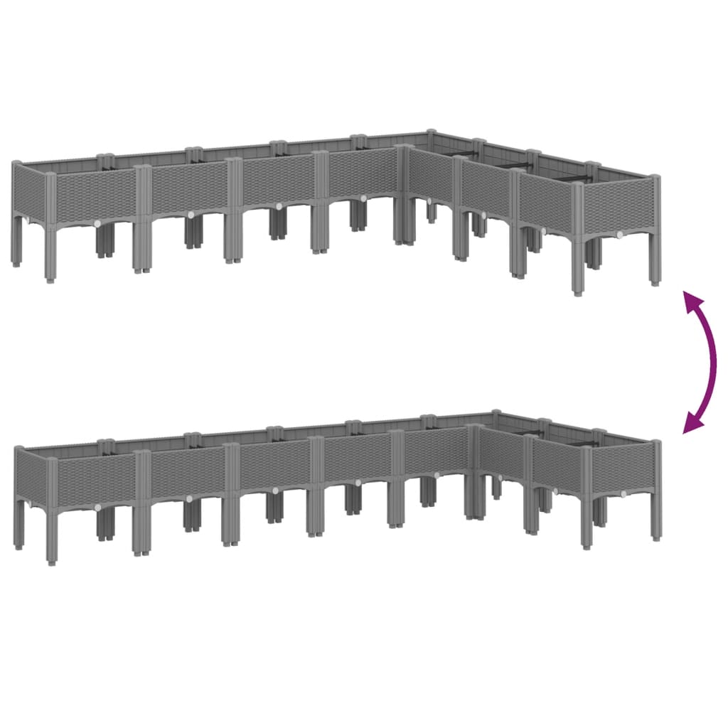 Jardinière bac lit surélevé plantes fleurs terrasse jardin avec pieds clair 200 x 160 x 42 cm PP gris 02_0038175
