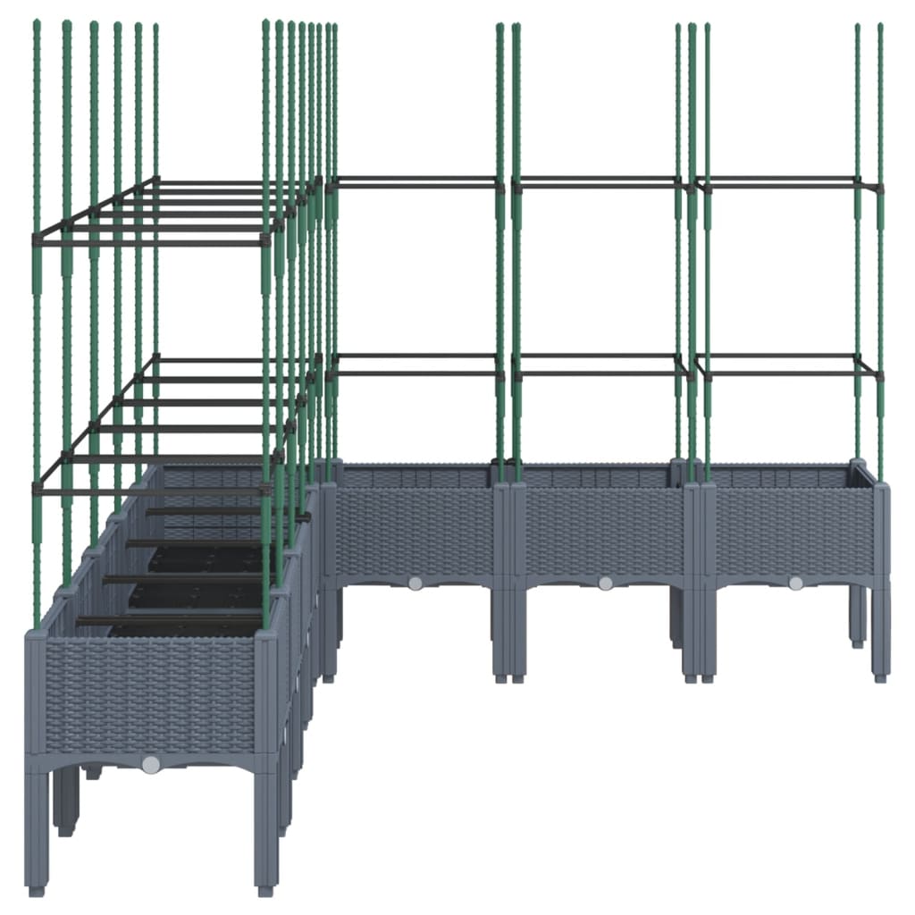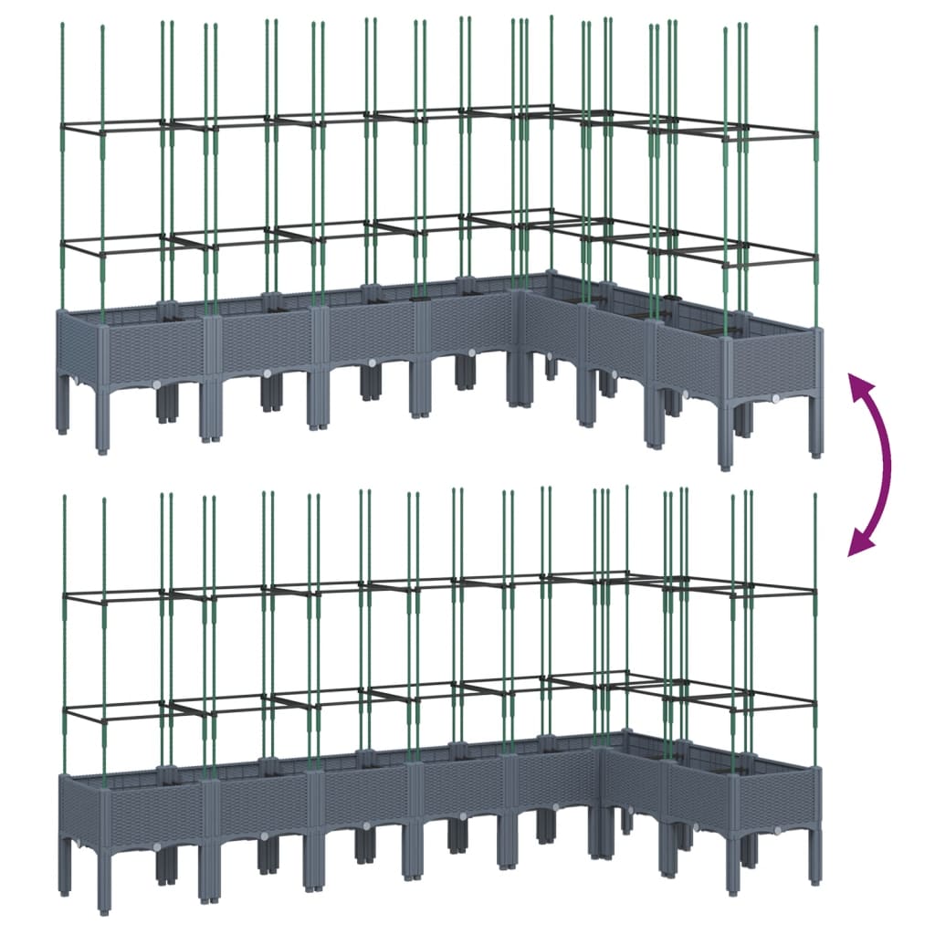 Jardinière bac lit surélevé plantes fleurs terrasse jardin avec treillis 200 x 160 x 142,5 cm PP gris 02_0038279