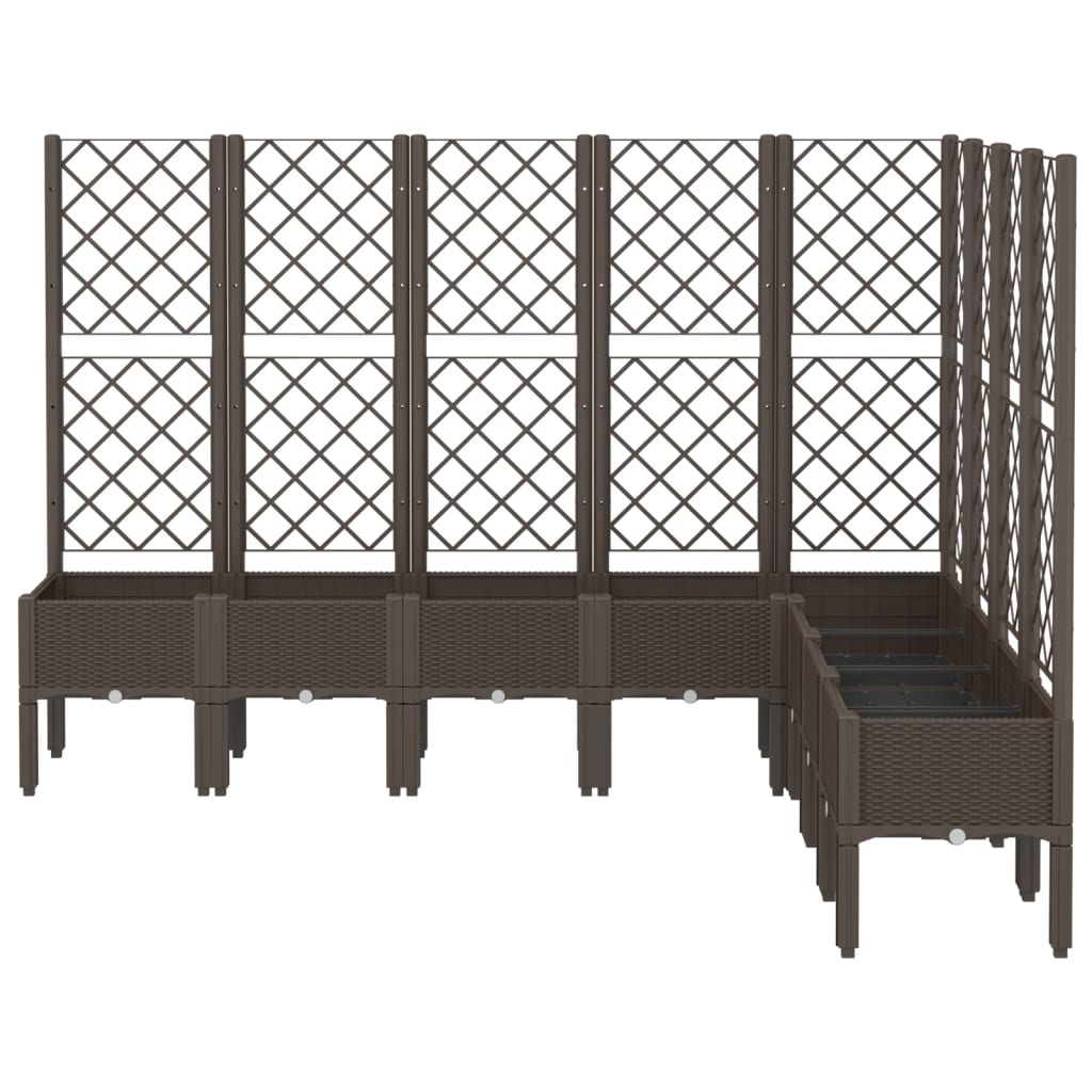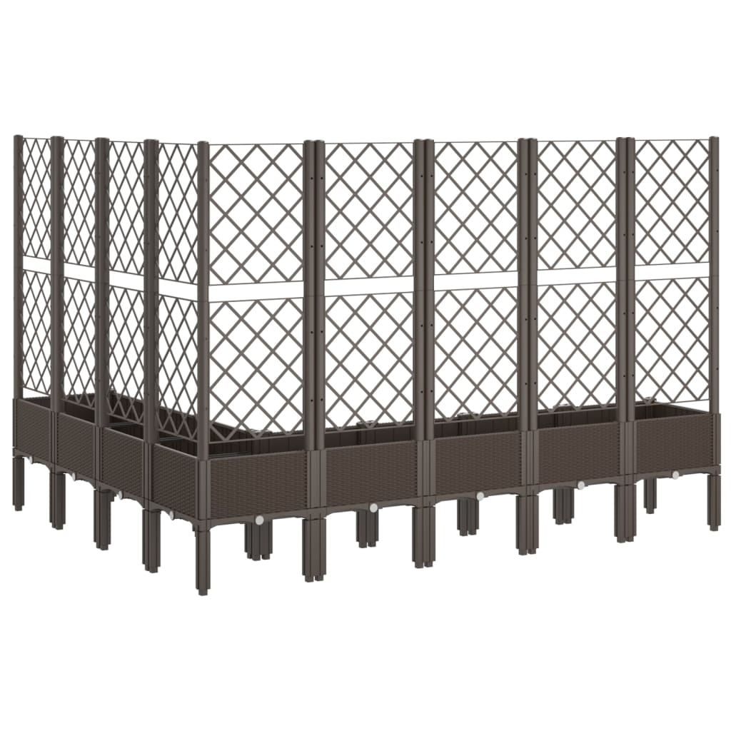 Jardinière bac lit surélevé plantes fleurs terrasse jardin avec treillis 200 x 160 x 142 cm PP marron 02_0038276
