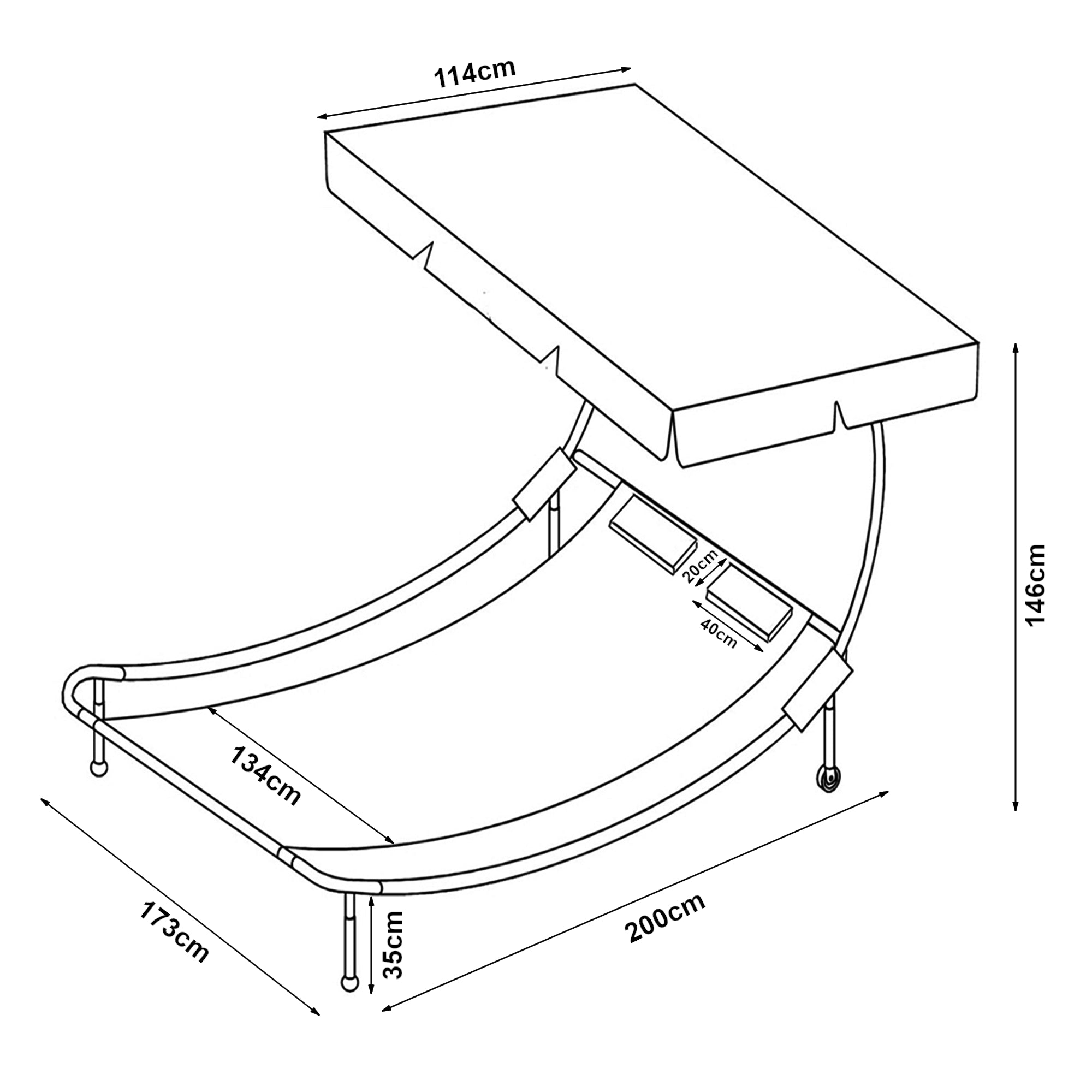 - surface de couchage (longueur x largeur) : 200 x 134 cm