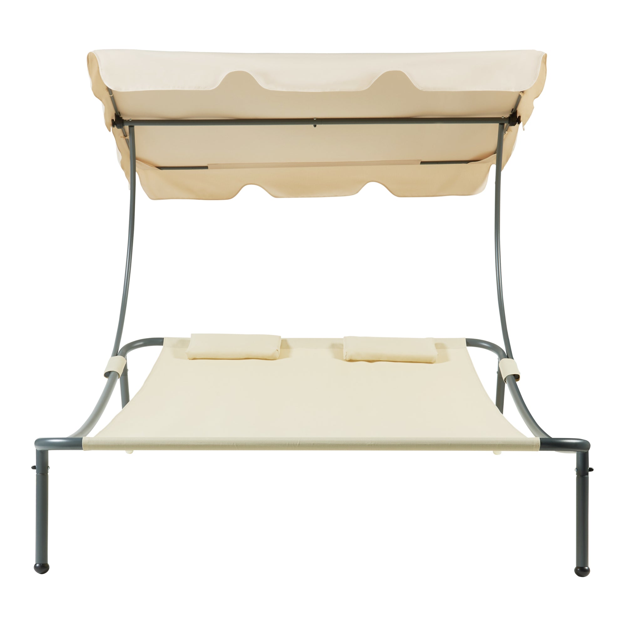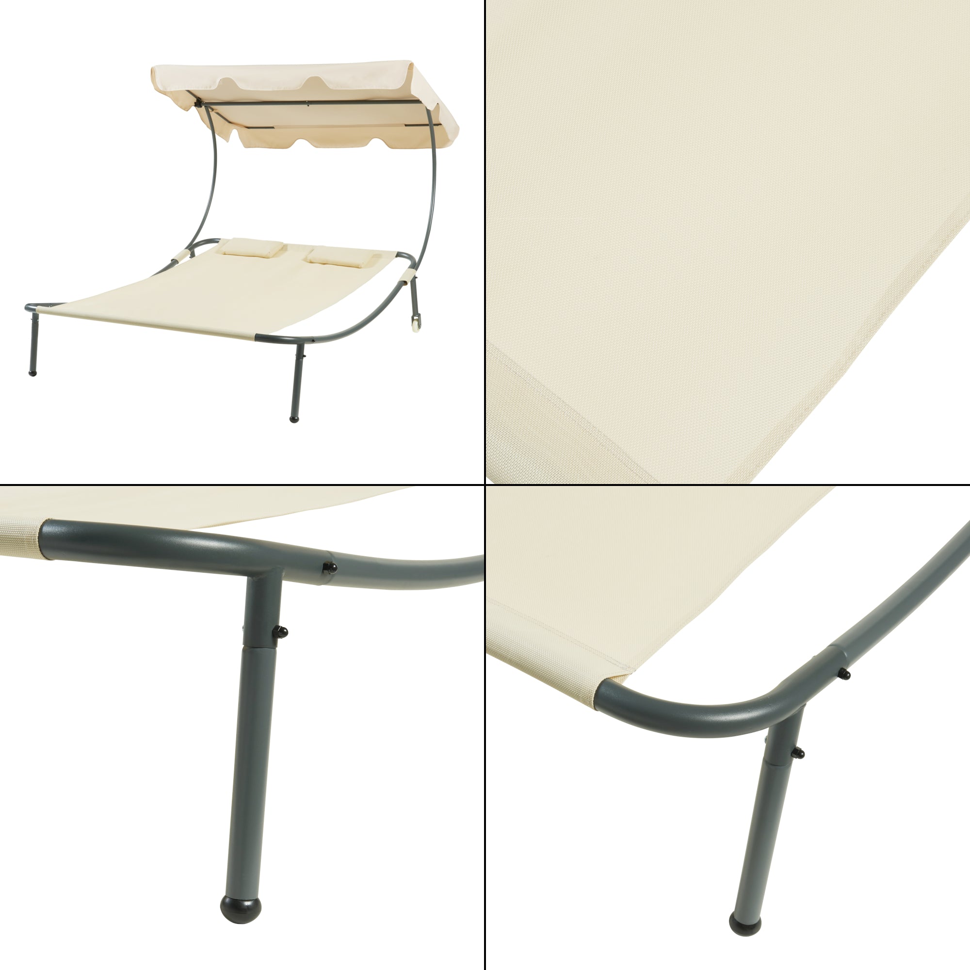 Chaise longue double avec auvent acier laqué polyester beige 03_0009208