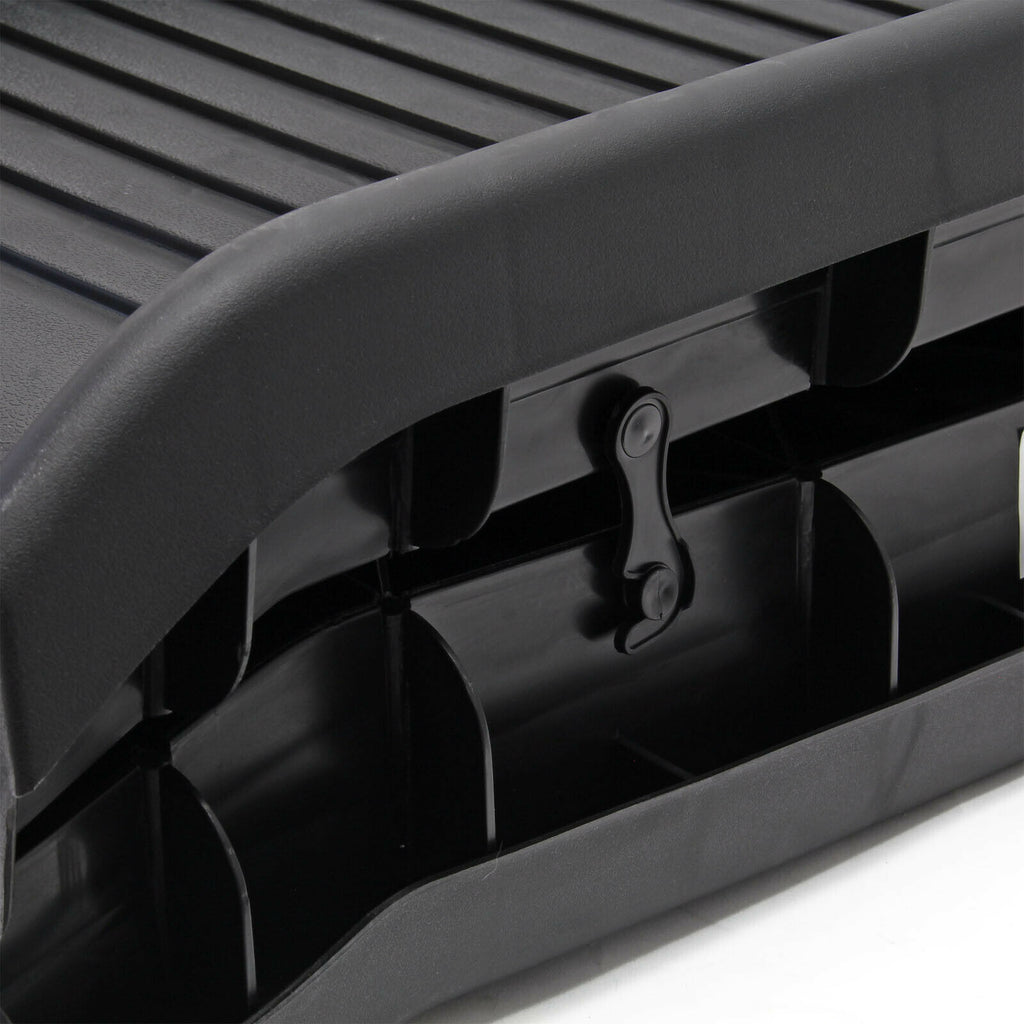 Le revêtement antidérapant et les rails de guidage latéraux facilitent l’accès au coffre de la voiture ou bien à la zone de chargement.