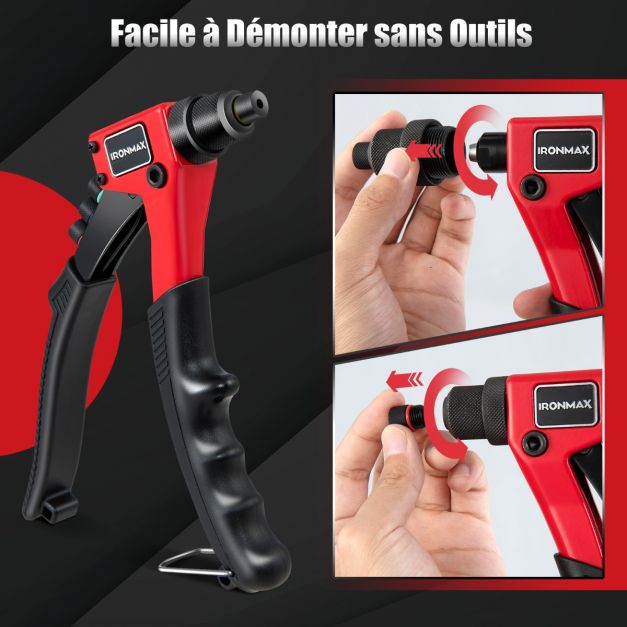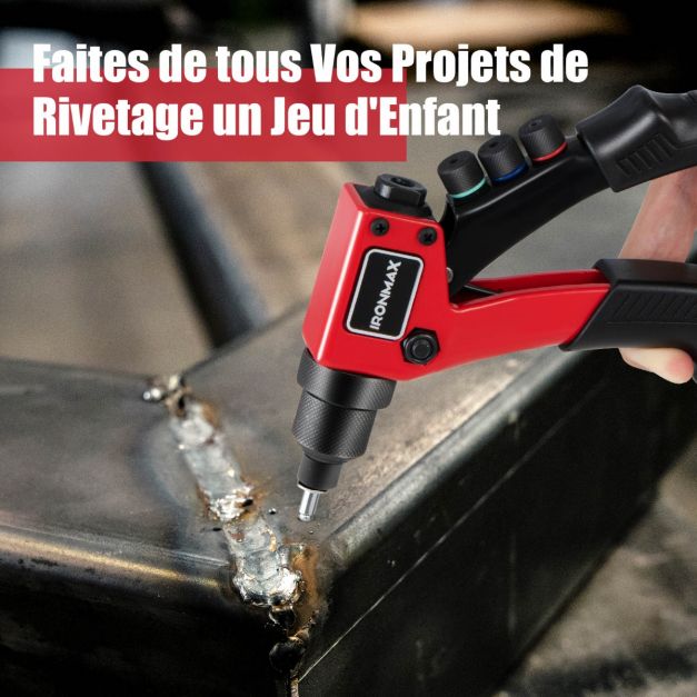 Riveteuse manuelle avec 200 rivets et 4 outils-embouts de rivets interchangeables à volonté avec étui de transport 20_0005359