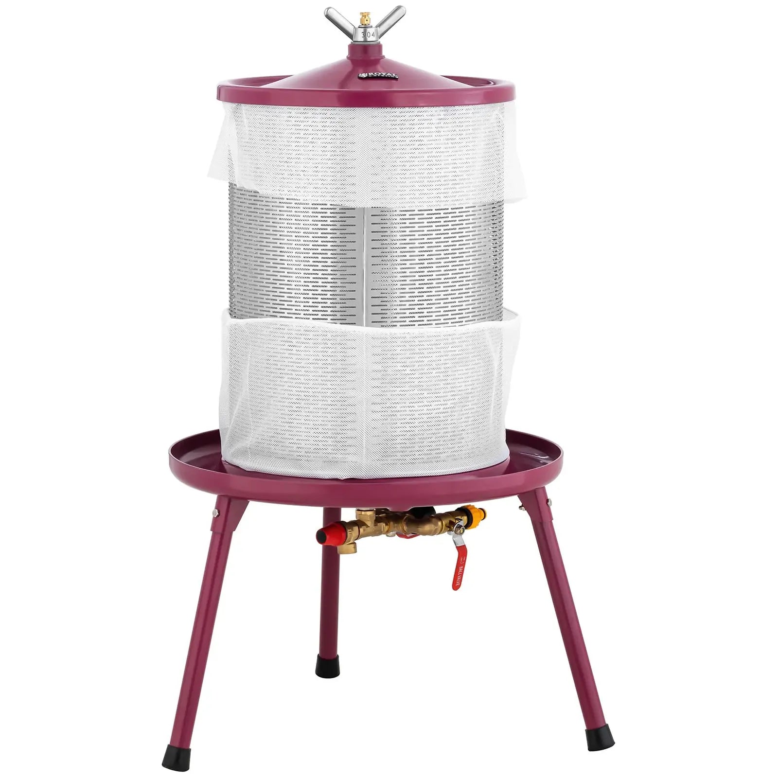 Pressoir à fruit hydraulique acier inoxydable/fer 40 litres 3 bar 5 étamines pour pressoir incluses acier inoxydable caoutchouc fer rouge argenté 14_0009794