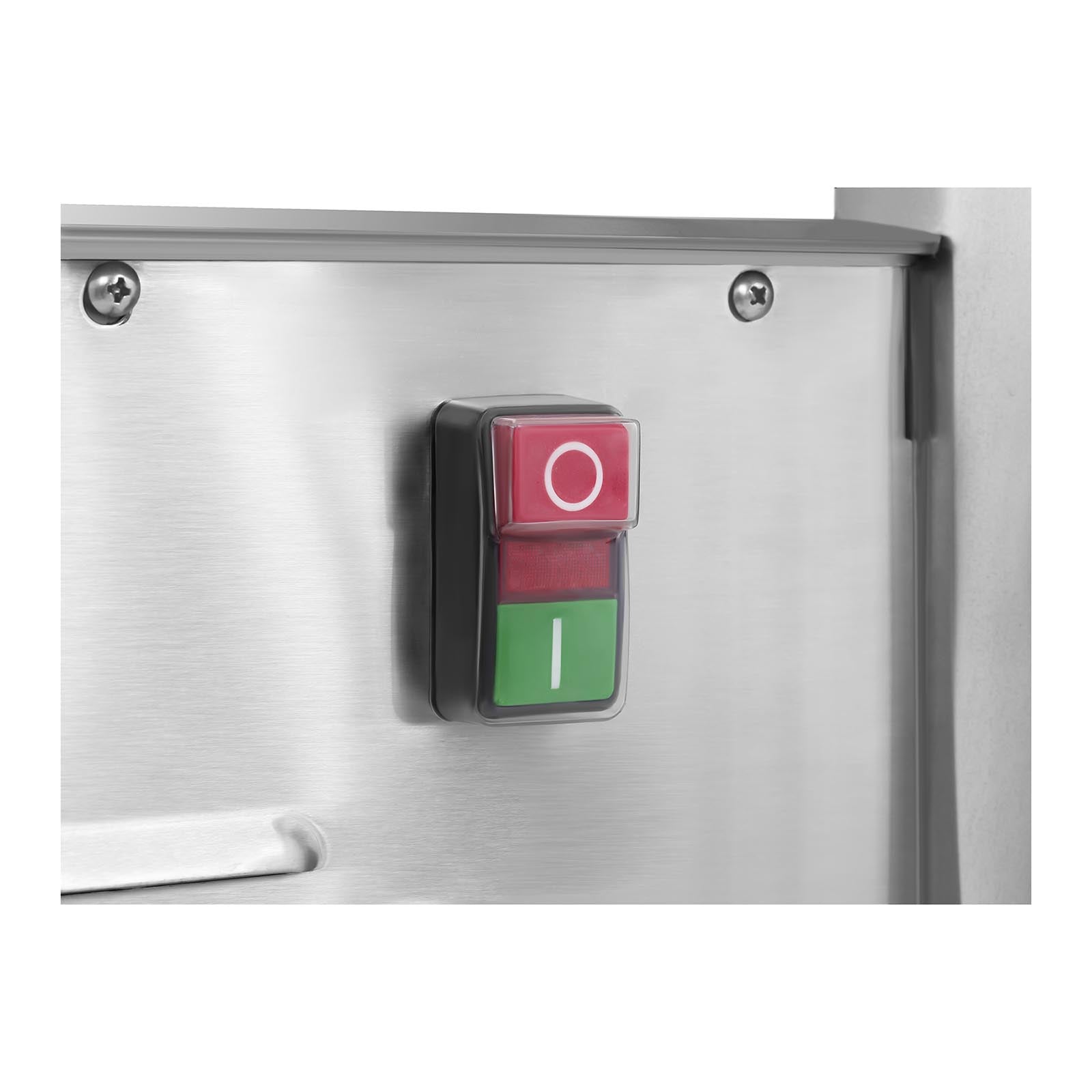 La lame en inox de la scie est spécialement conçue pour la transformation des aliments, c’est pourquoi elle fournit de très bons résultats de coupe.