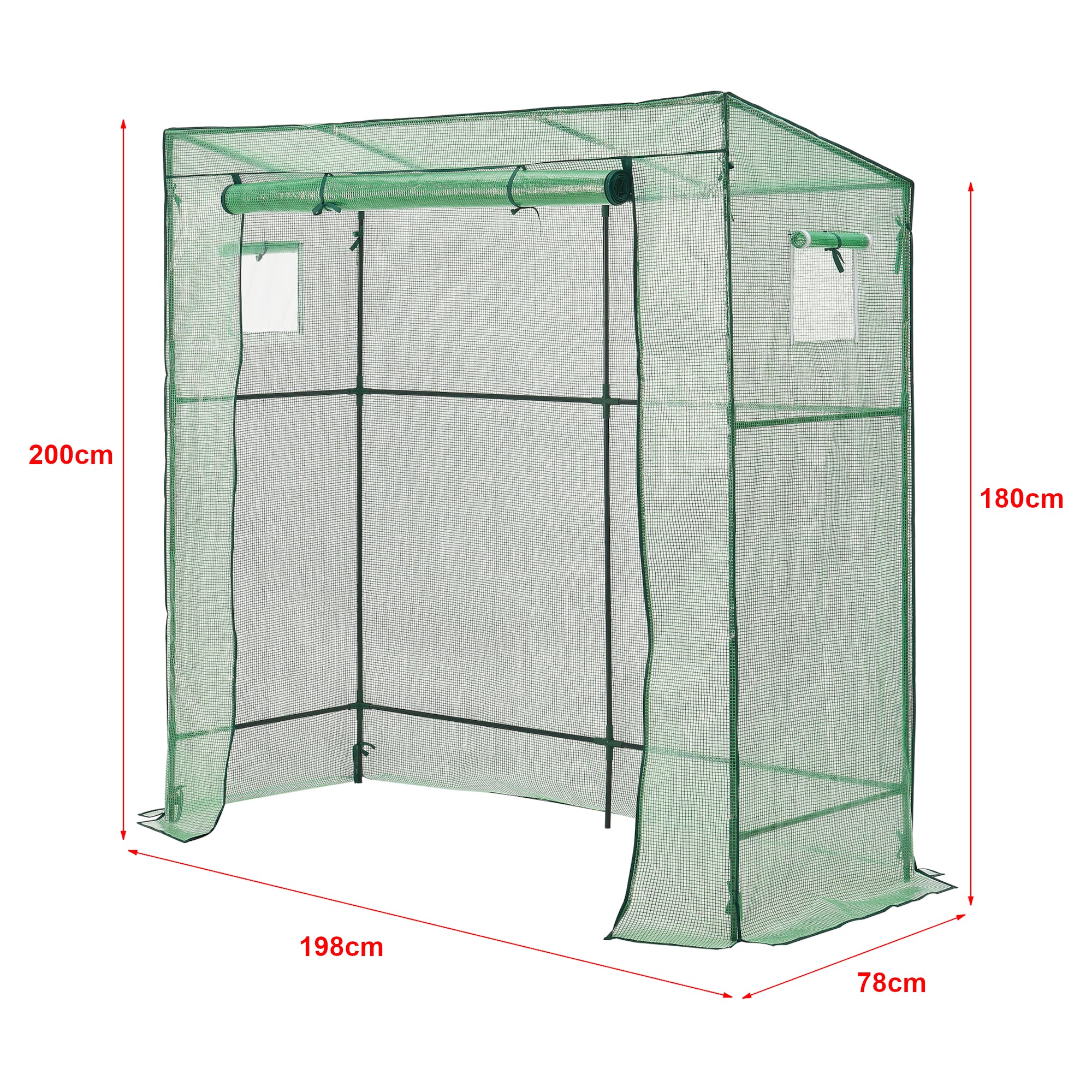 Serre de tomates en acier et polyéthylène à porte et 2 fenêtres zippées 198 x 78 x 180 - 200 cm vert 03_0008261