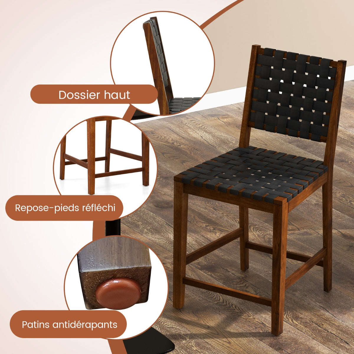 Les repose-pieds antidérapants évitent les rayures sur le sol