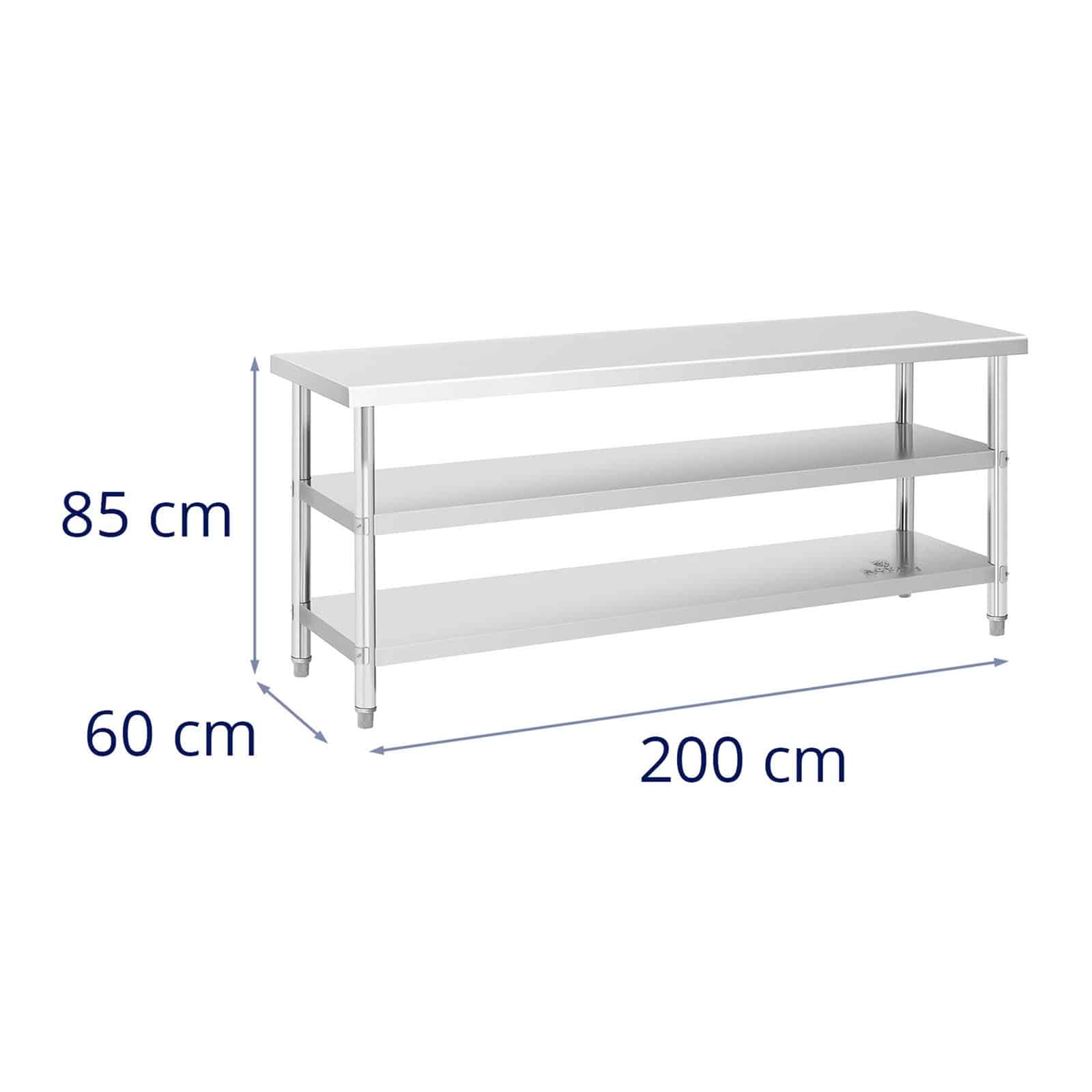 Table de travail inox Table de travail en inox table de travail cuisine 200 x 60 x 5 cm 231 kg 2 tablettes 14_0007314