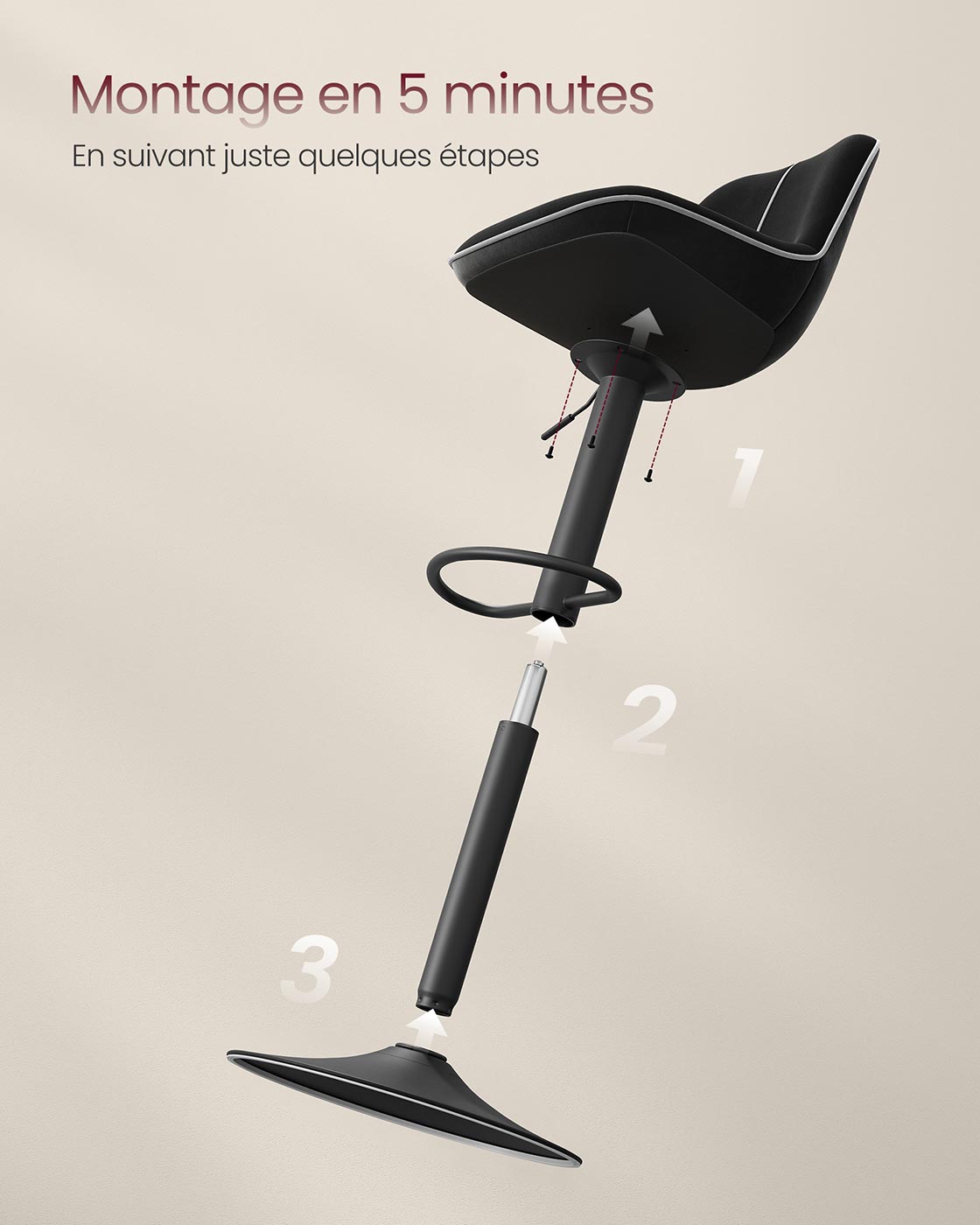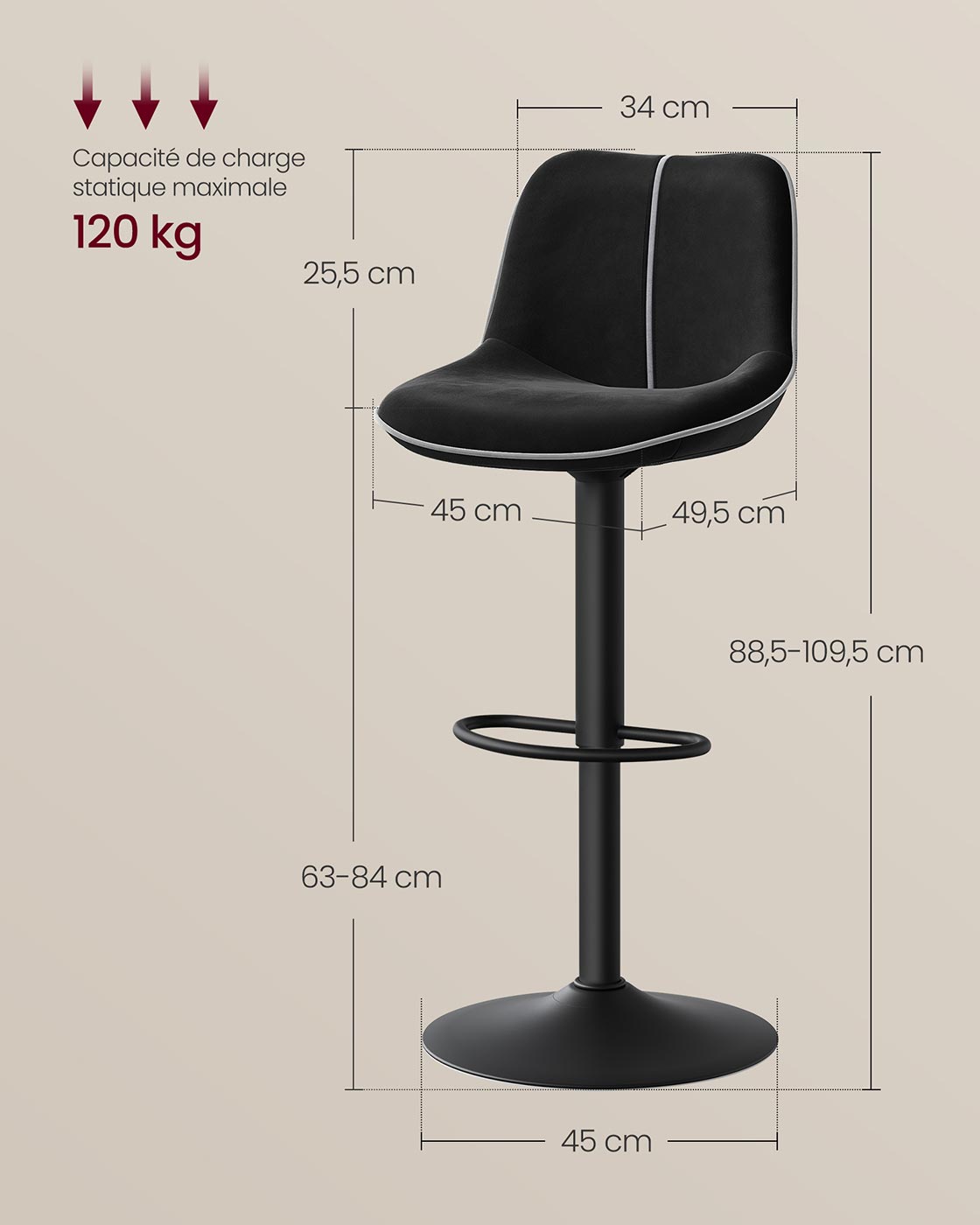 Conçus pour la stabilité, ils reposent sur une base robuste de 45 cm de diamètre, garantissant une assise sûre même lors des rotations. Chaque tabouret est également équipé d’un repose-pieds extra large, permettant de soulager vos jambes et de vous asseoir dans une position plus détendue.