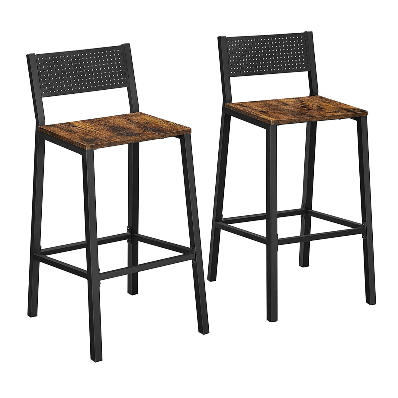 Apportez une touche industrielle à votre intérieur avec ces tabourets au design unique. Leur combinaison de panneaux marron rustique, de métal noir et d’un dossier ajouré crée une ambiance conviviale et tendance dans un bar, une cuisine ou une salle à manger.