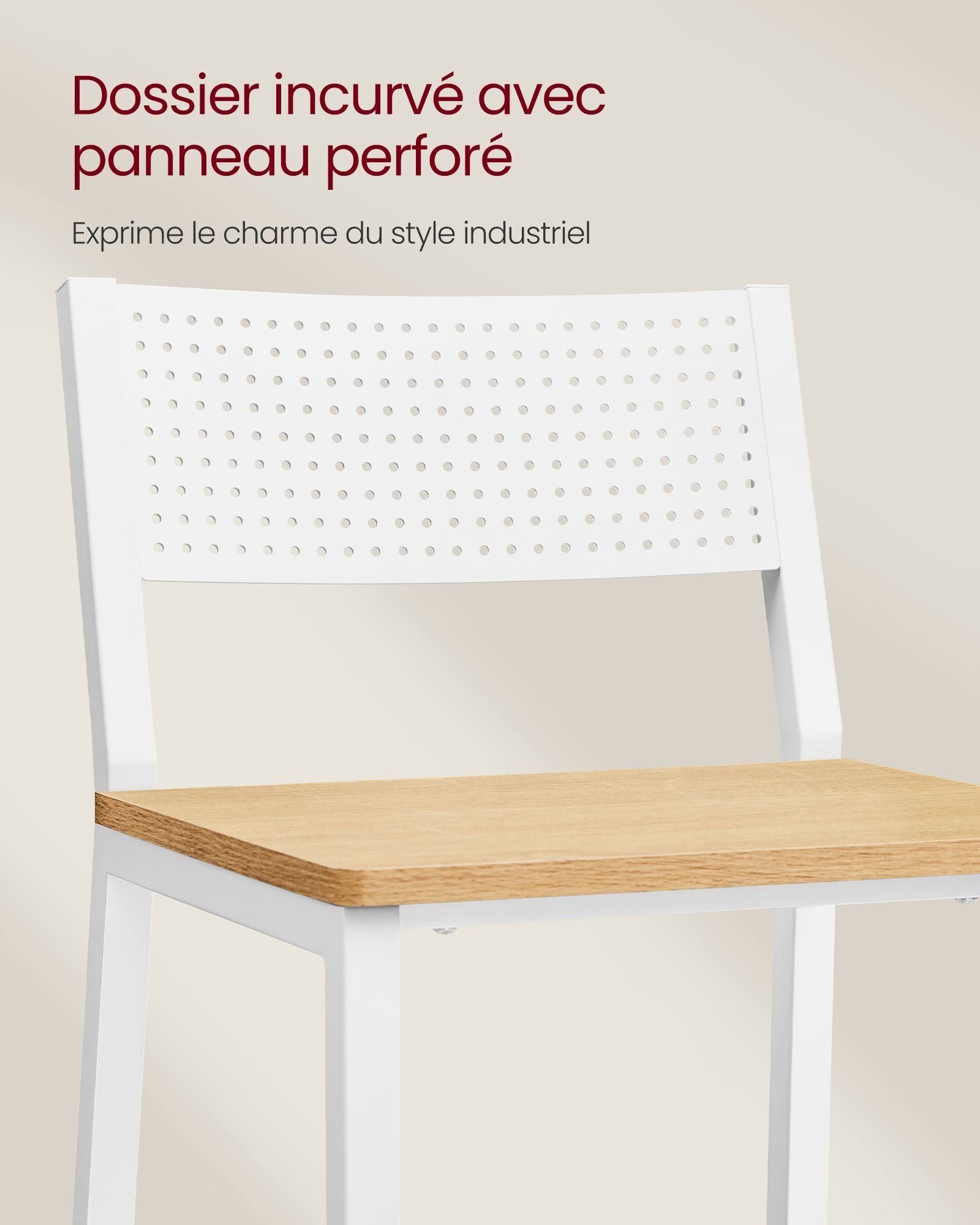 Apportez une touche industrielle élégante à votre intérieur avec ces tabourets de bar au design à la fois moderne et chaleureux. Le mariage du métal blanc intense et des panneaux beige chêne crée un contraste raffiné, tandis que le dossier ajouré ajoute une note de légèreté. Que ce soit dans la cuisine, au bar ou dans la salle à manger, ces tabourets attirent tous les regards.
