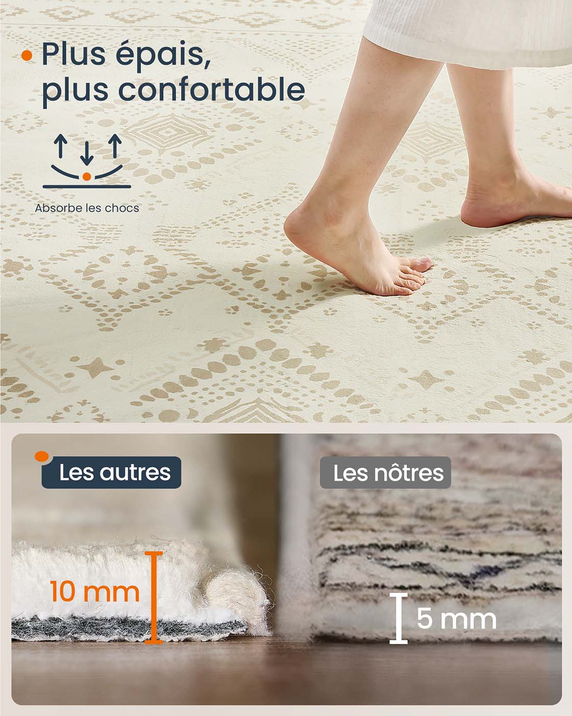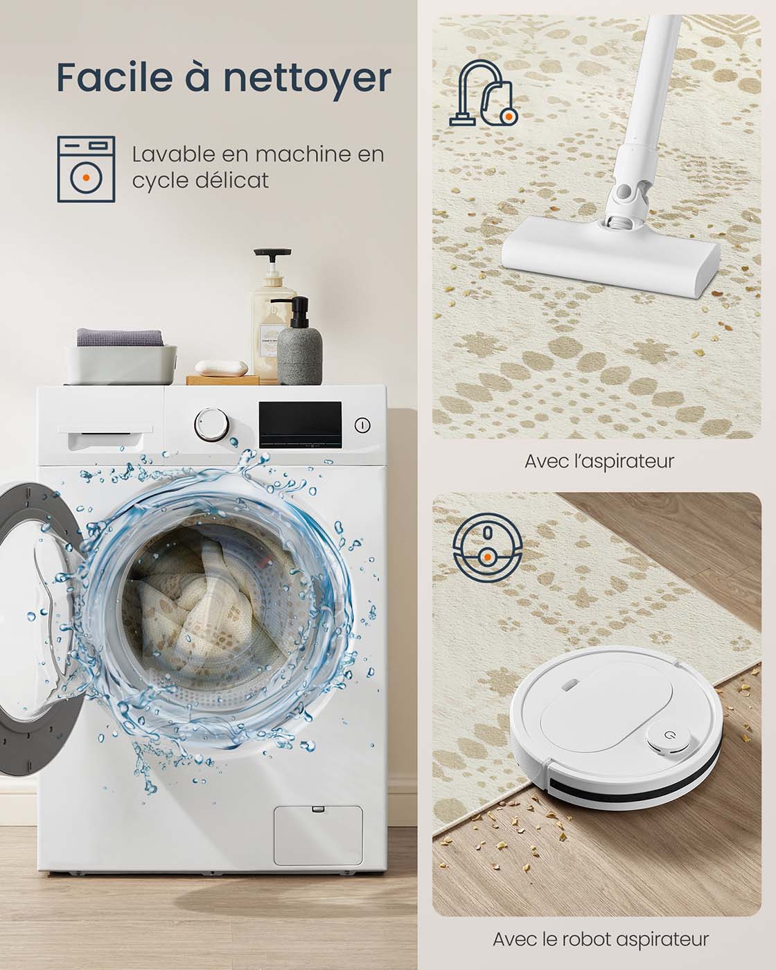 Fabriqué dans des matériaux de qualité, ce tapis est durable et lavable en machine, conservant sa douceur et son confort même après plusieurs lavages. Sa conception pliable facilite son transport et son rangement, vous permettant de le déplacer aisément ou de l’adapter selon vos envies de décoration.