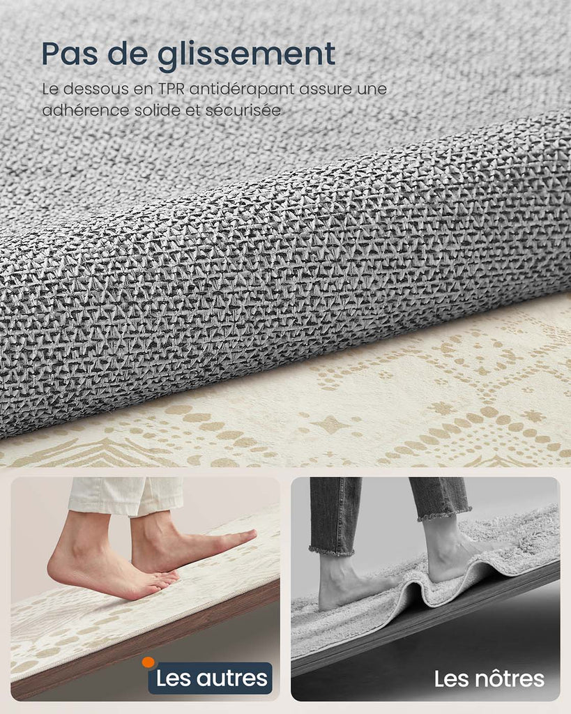 Le dessous en TPR antidérapant assure une excellente adhérence sur différents types de sols, qu’il s’agisse de parquet, de carrelage ou d’autres surfaces, réduisant ainsi les risques de glissade.