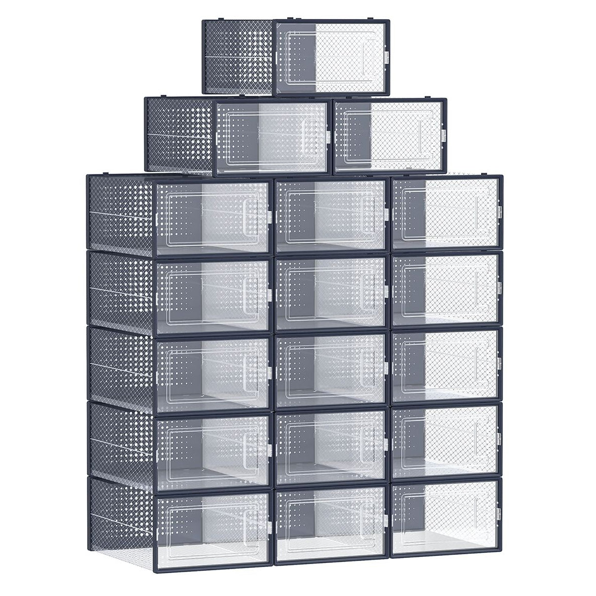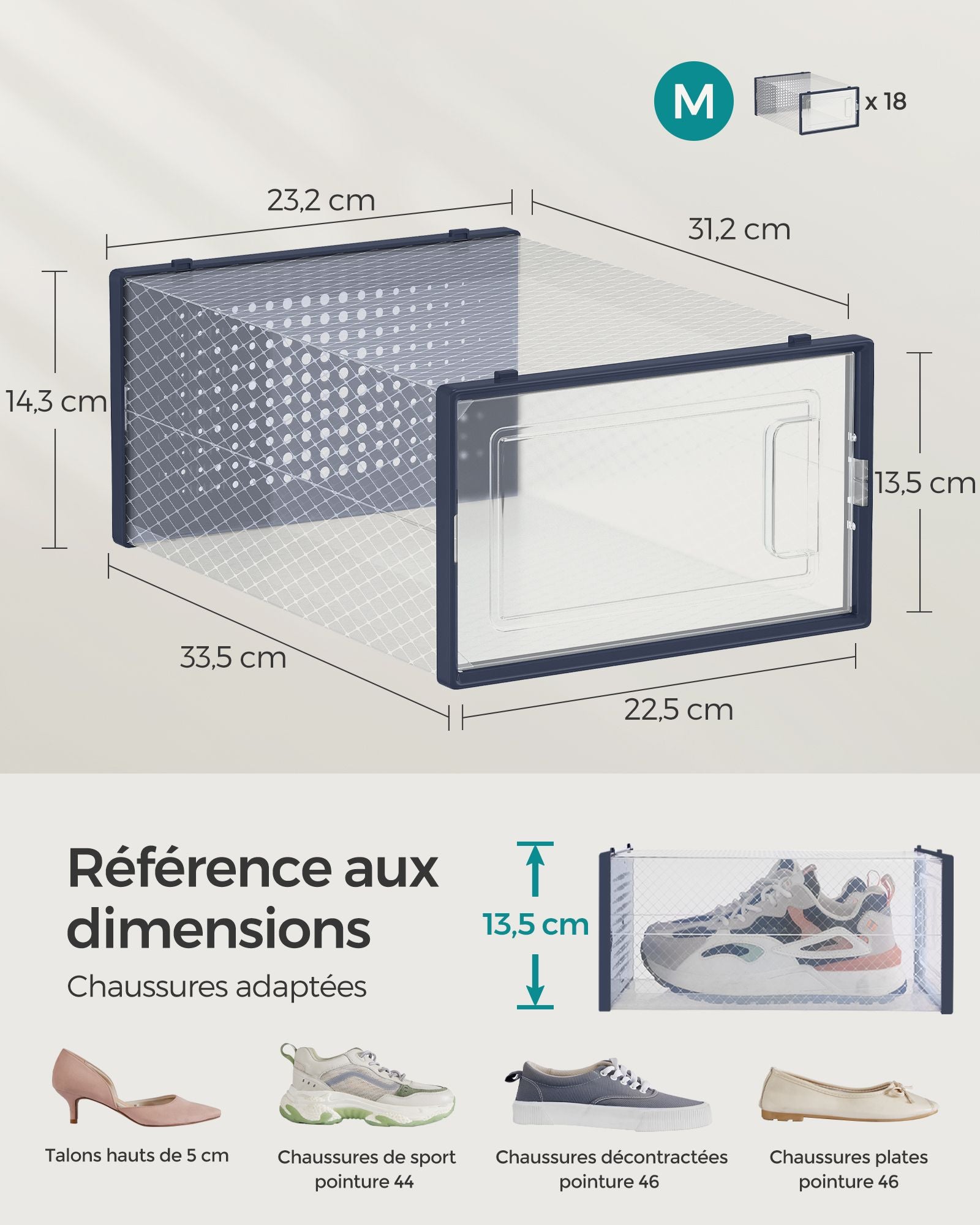 Boîtes à chaussures lot de 18 rangement chaussures pliable pour pointure jusqu’à 44 transparent et bleu 12_0004446