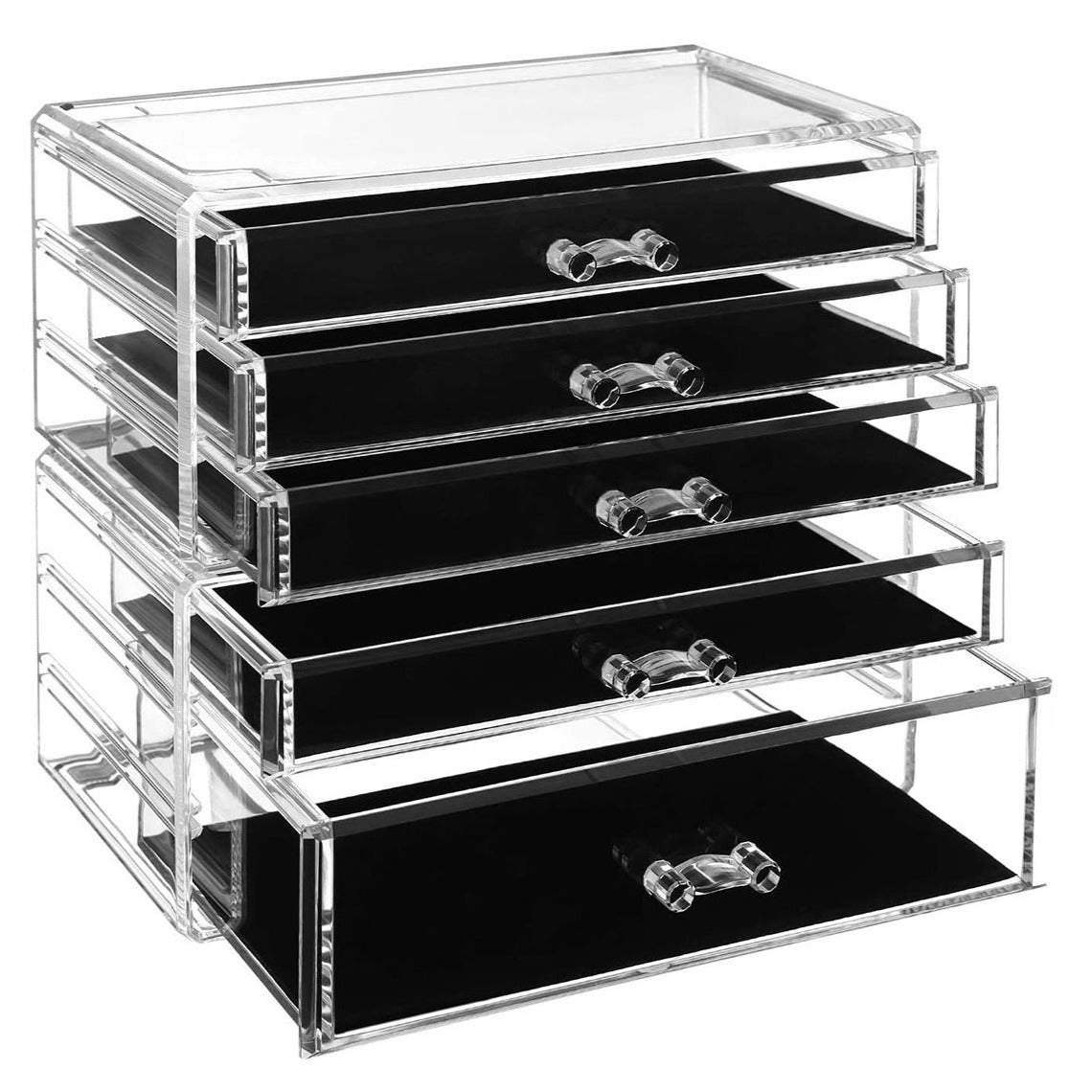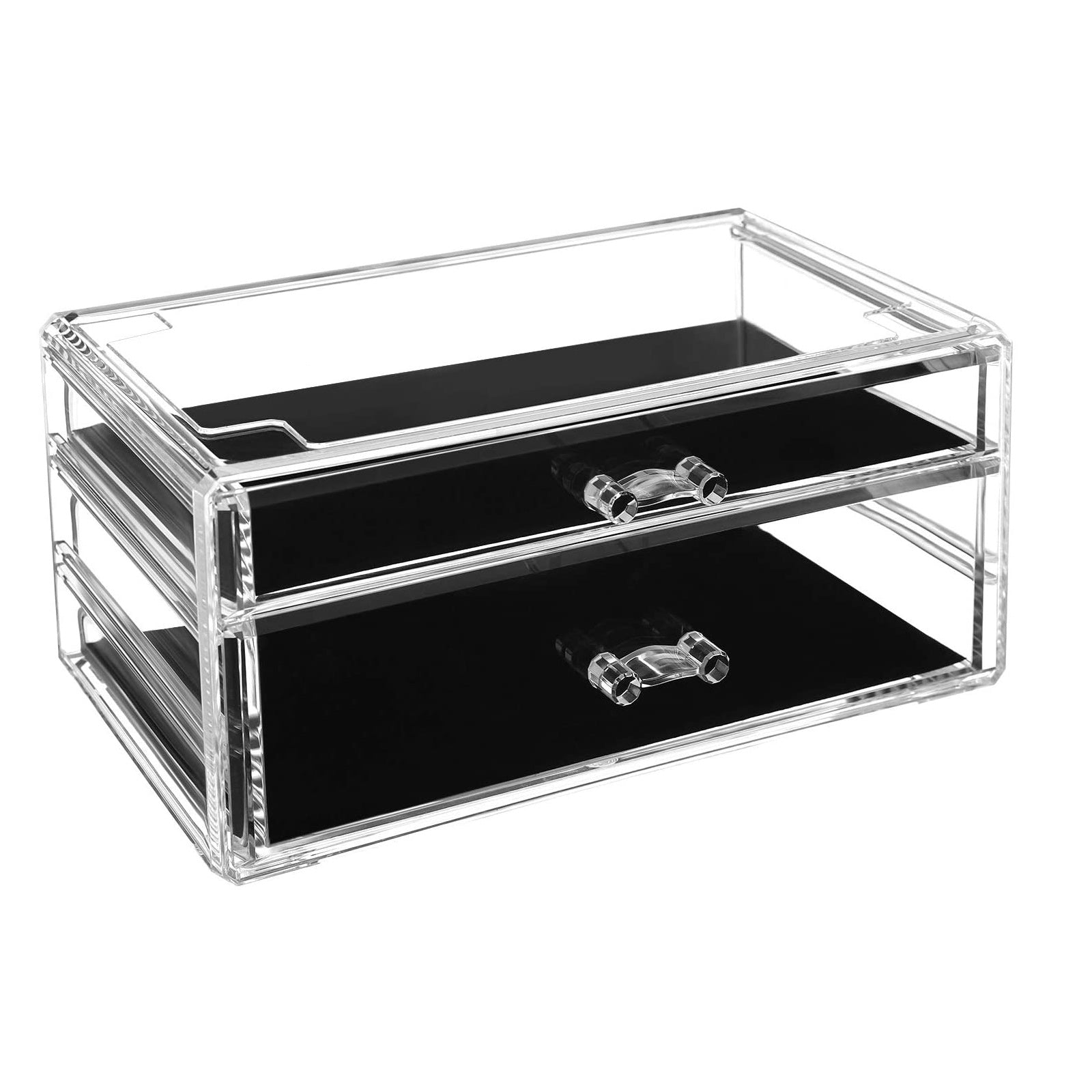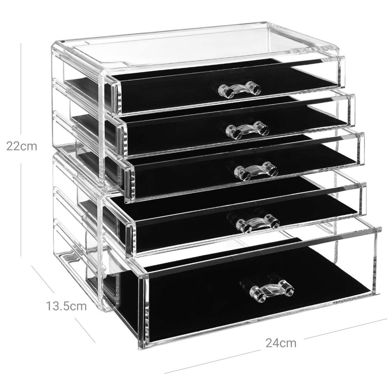 Organiseur de maquillage ensemble de 2 boîtes de rangement pour bijoux et maquillage empilables 5 tiroirs organisateur de cosmétiques en polystyrène transparent 12_0003526