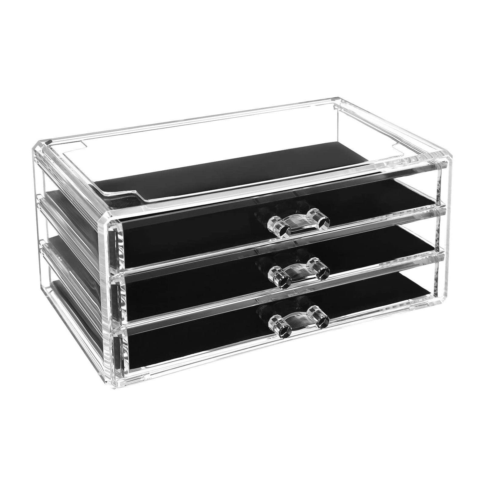 Divisé en 2 parties empilables ; 1 grand tiroir inférieur de 6 cm de hauteur est conçu pour vos crèmes, fond de teint, etc.