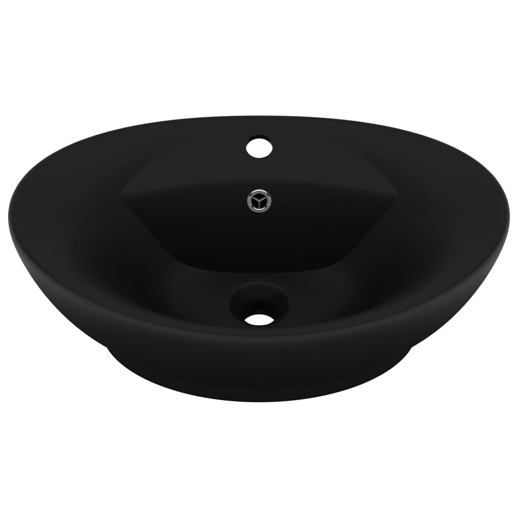 Lavabo ovale de luxe à trop-plein vasque à poser de toilette lave-mains de salle de bain salle cosmétique 58,5x39 cm céramique noir mat 02_0002684