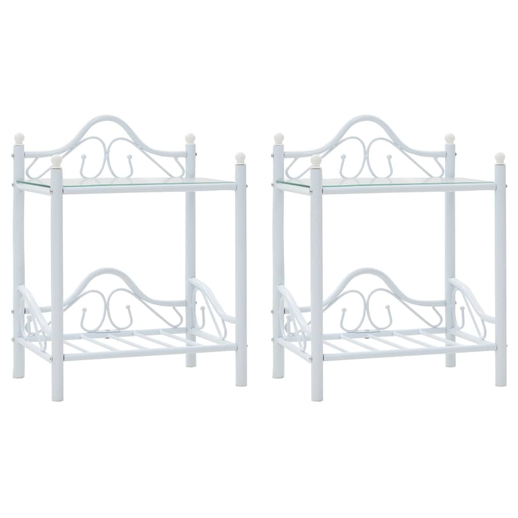 Table de nuit chevet commode armoire meuble chambre 2 pcs acier et verre trempé 45x30 5x60 cm blanc 1402032