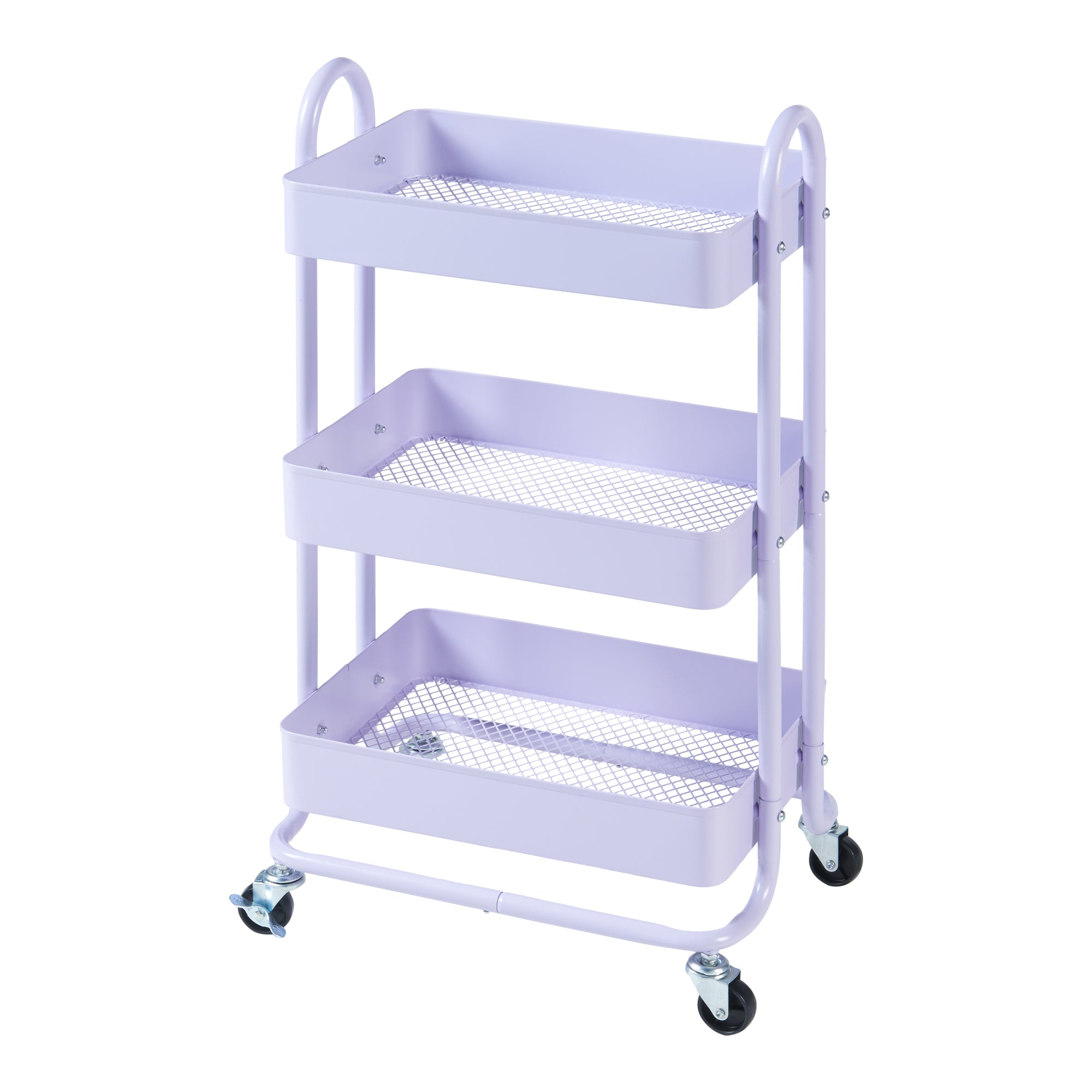 Chariot de service desserte cuisine salon meuble de rangement à 3 paniers 79 x 46 x 35 cm acier violet 03_0009233