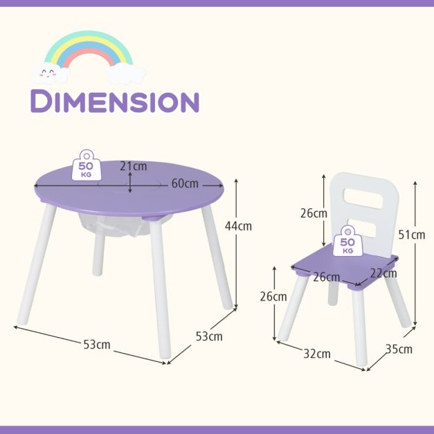 Ensemble table avec 2 chaises et espace de rangement pour jouets 3-7 ans violet 20_0008513