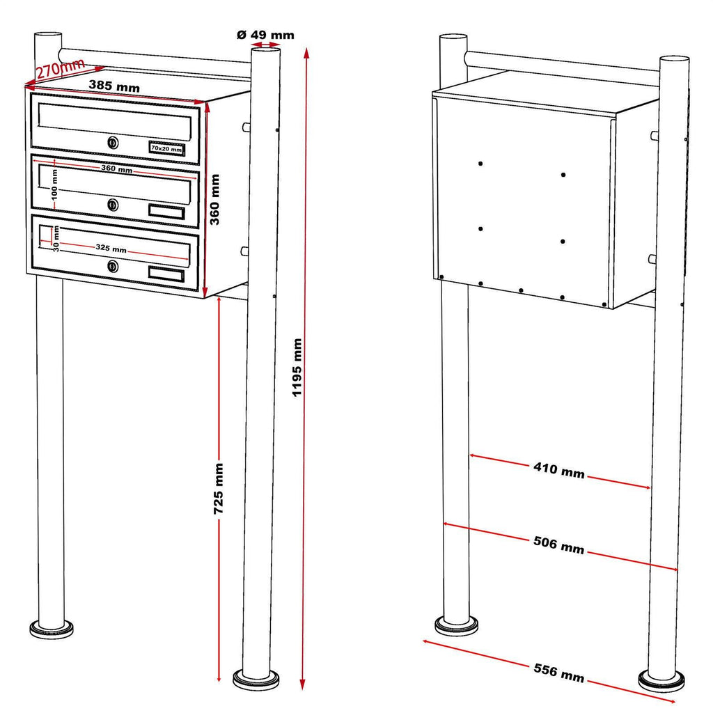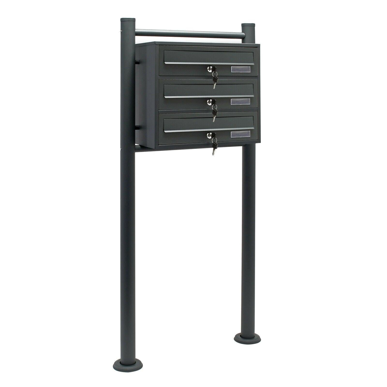 Bloc 3 boites aux lettres pied de support 3 compartiments superposé acier galvanisé 36 x 38,5 x 27 cm anthracite 16_0000028