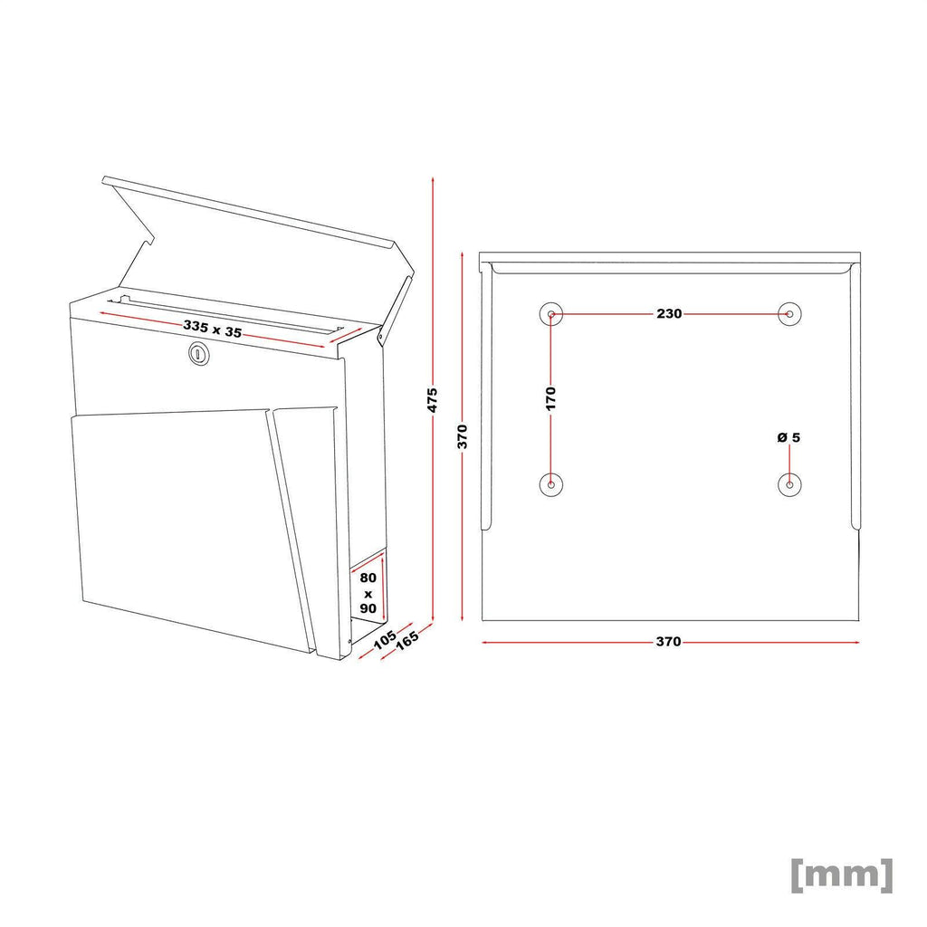 Dimensions de la boite aux lettres: 370 x 370 x 105mm