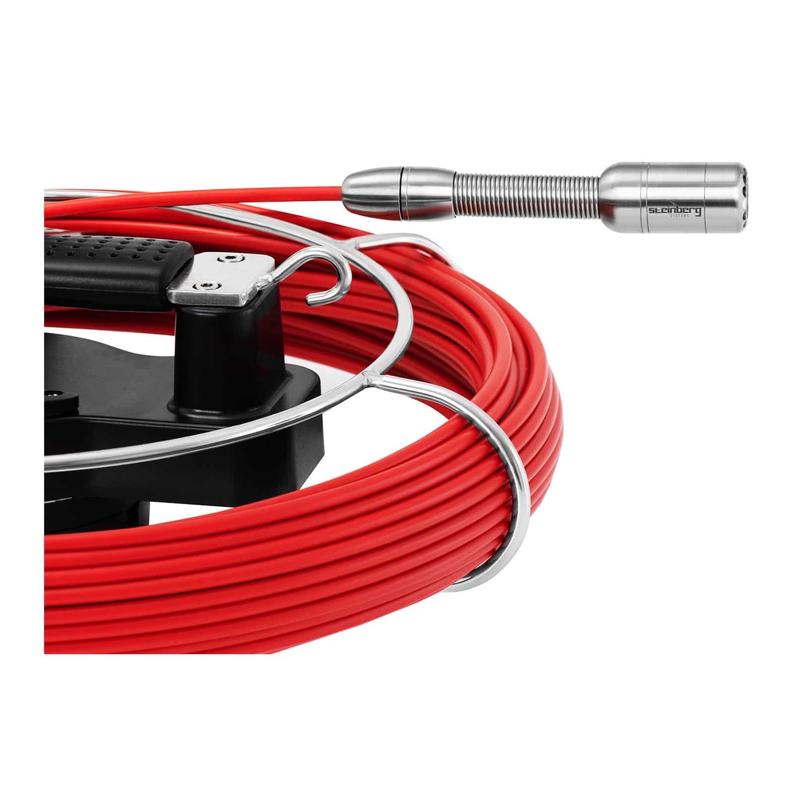 Cette caméra d’inspection possède une tête en aluminium allié, entrainée par un câble en fibre de verre de 30 m.