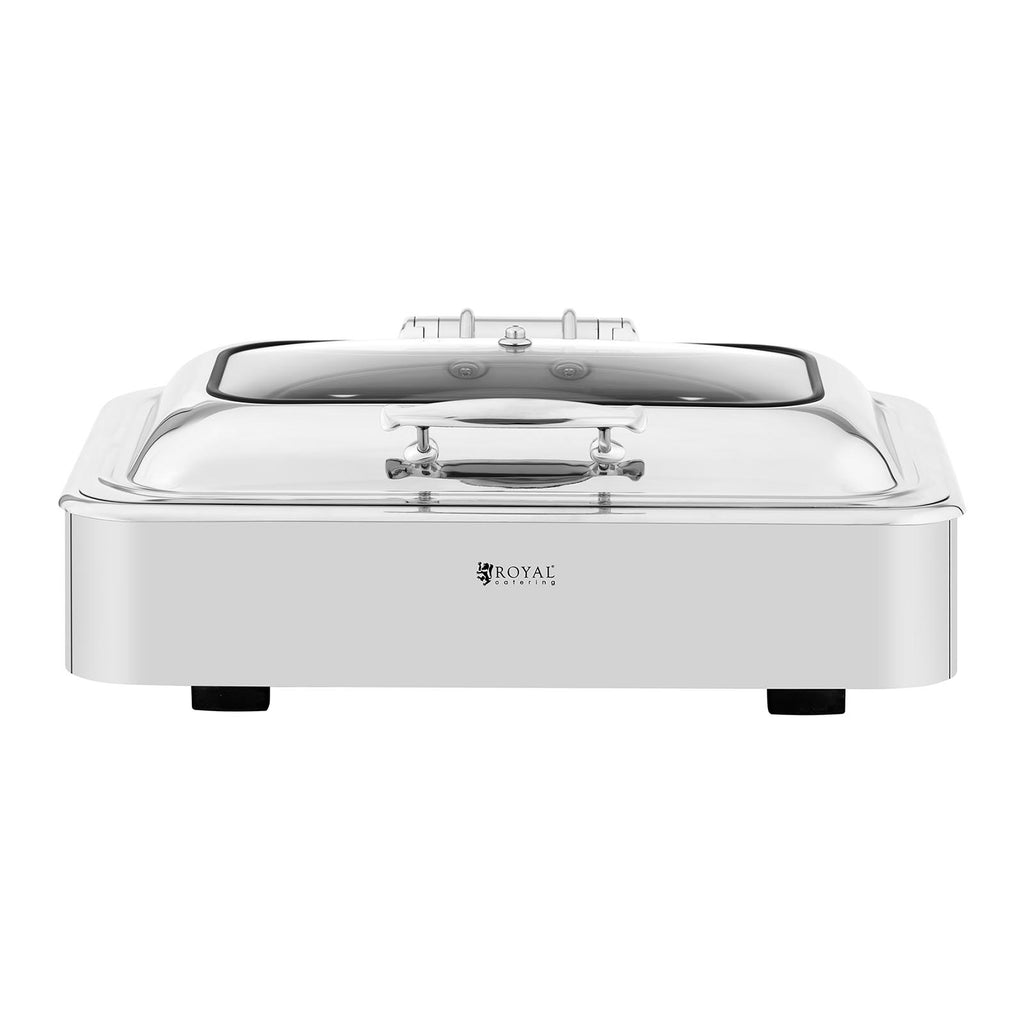 Chafing dish gn 1/1 professionnel à fond plat (acier inoxydable, verre trempé, 8,5 l, 1 récipient gn 1/1, poignée cool touch, hublot) 14_0004233