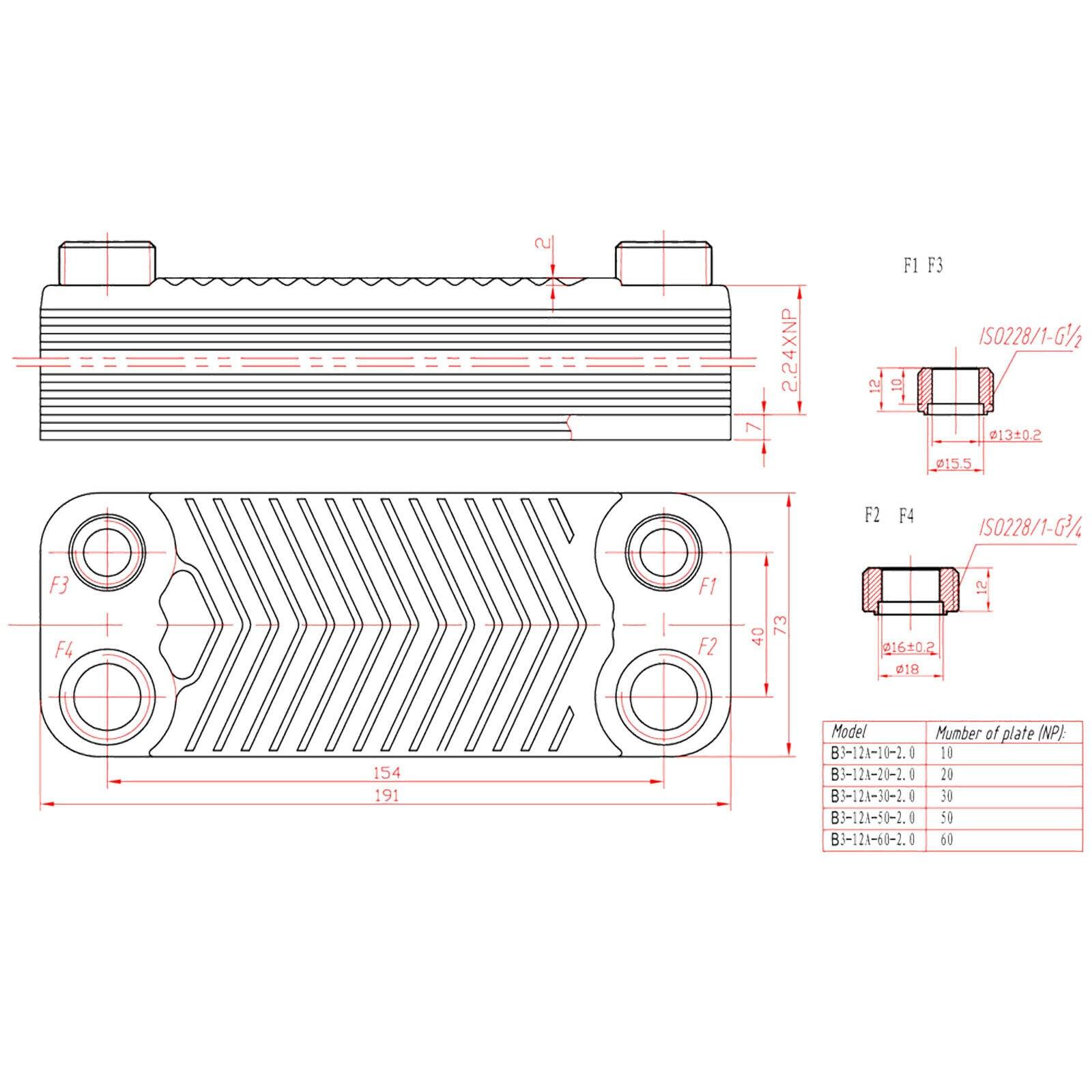 Les HRALE échangeurs de chaleur inox B3-12-60 soudés se composent de plaques inox imprimées qui sont brasées sous vide au cuivre.