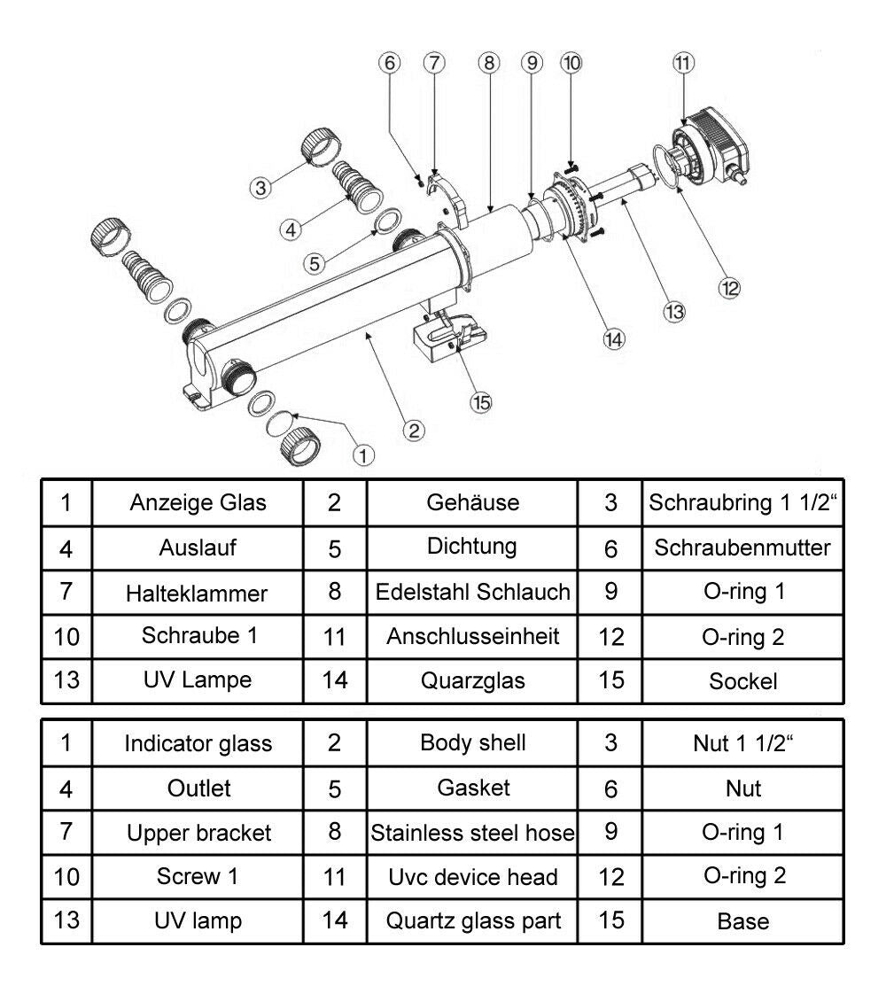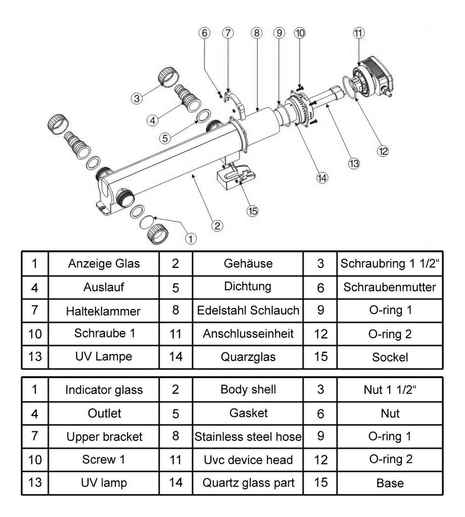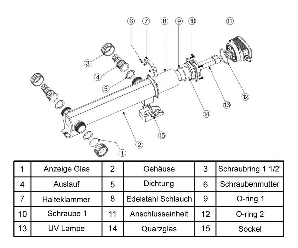 Nous recommandons donc au printemps, quand la température de l'eau du bassin monte de changer et de remplacer la lampe une fois par an et de nettoyer en même temps le verre quartz.