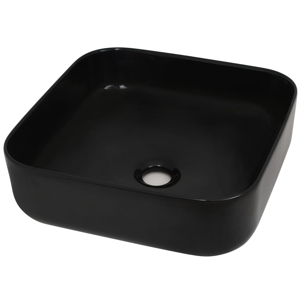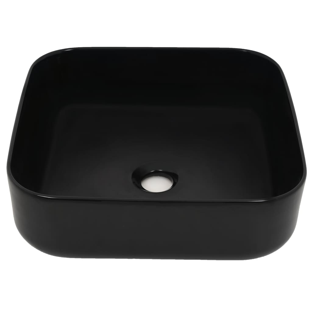 Lavabo carré céramique 38 x 38 x 13,5 cm vasque salle de bain toilette noir 02_0002537