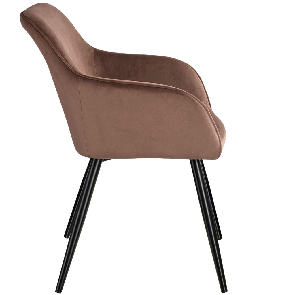 Lot de 6 chaises pieds noir siège de salon cuisine salle à manger design élégant velours marron 08_0000019