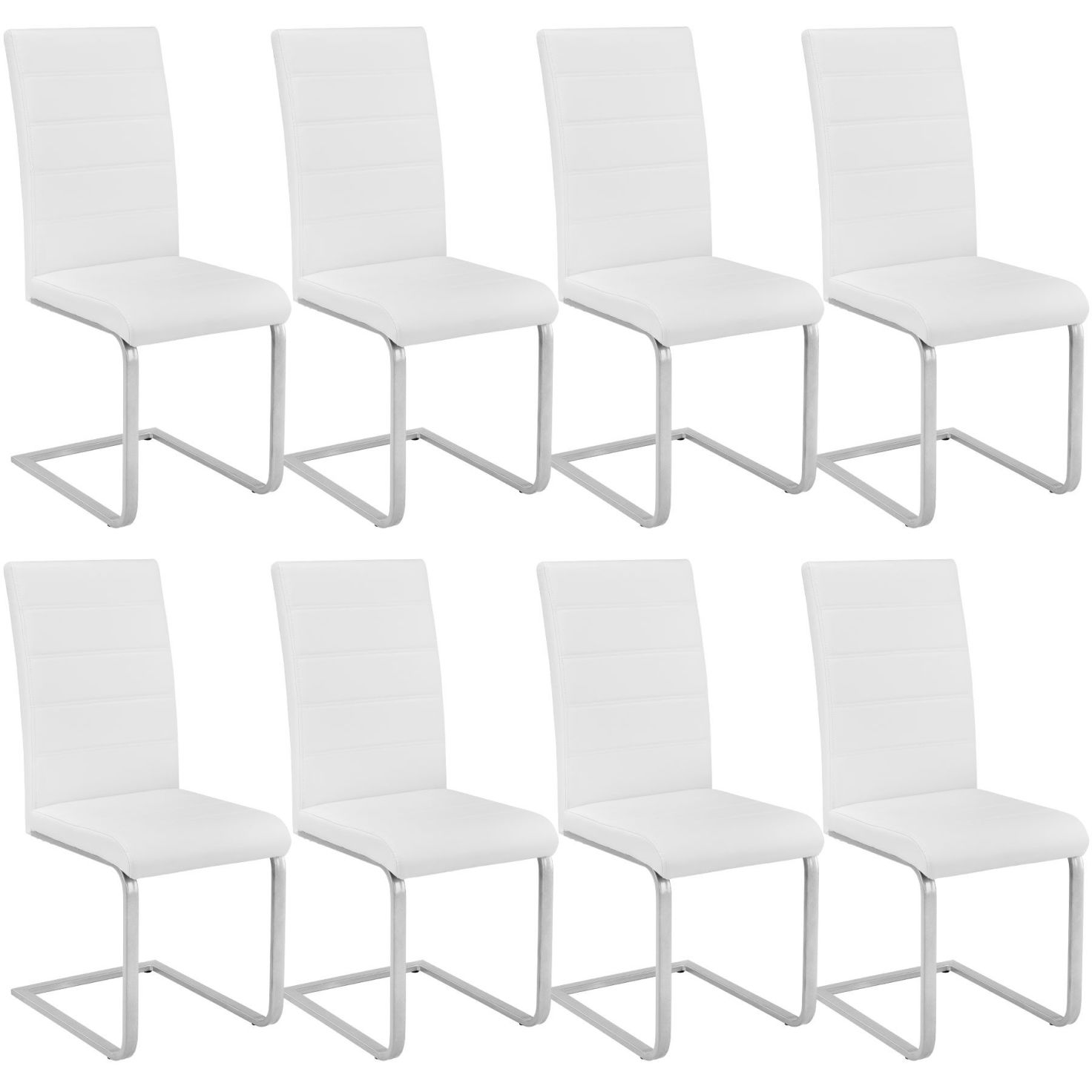 Lot de 8 chaises pieds acier siège de salon cuisine salle à manger design carré élégant blanc 08_0000091