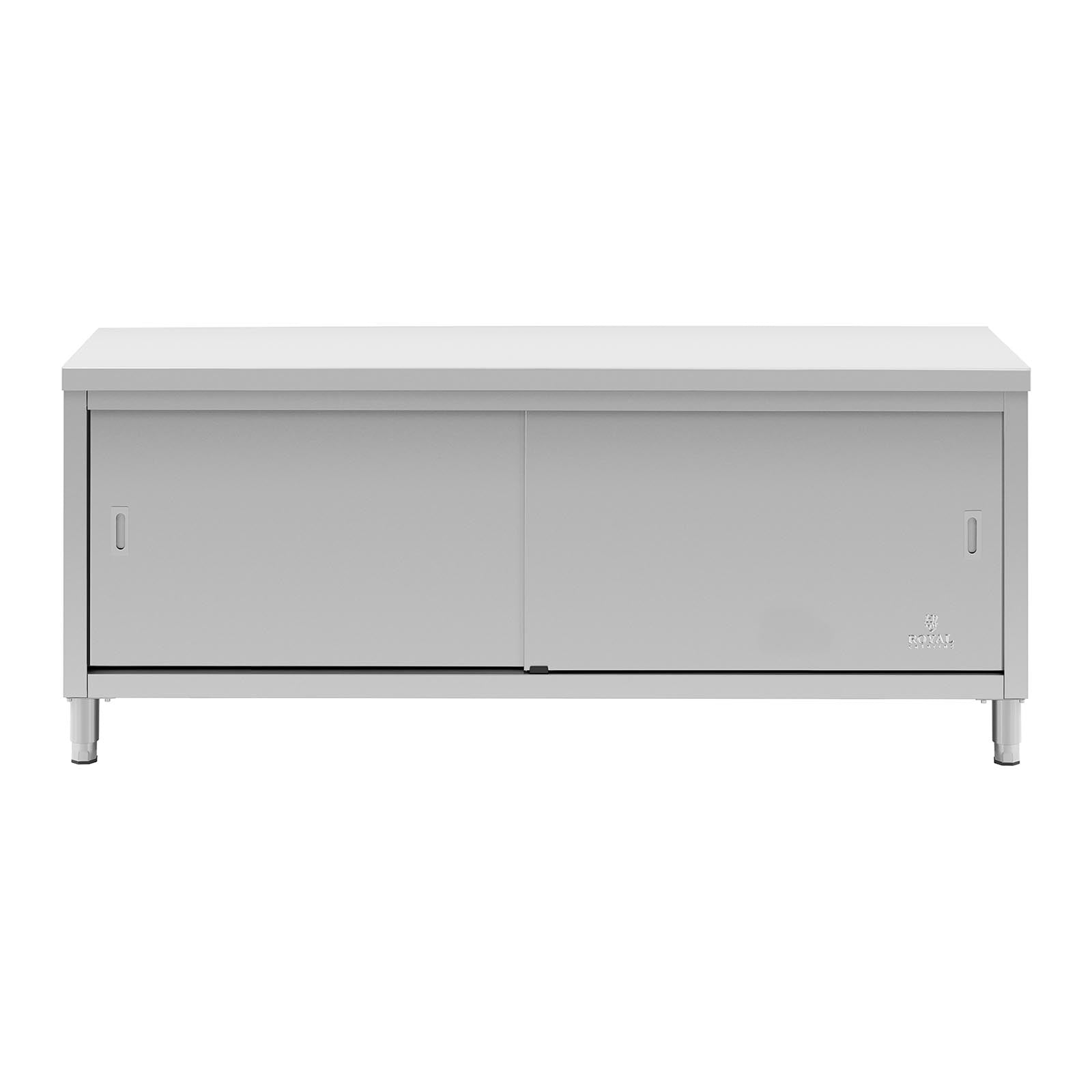 Meuble bas en acier inoxydable plan de travail cuisine armoire avec portes coulissantes (capacité de 600 kg, acier inoxydable, 1 tablette) 14_0005089