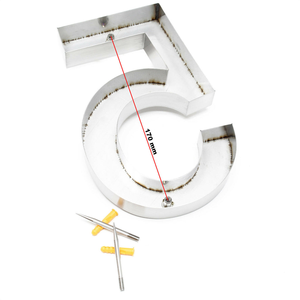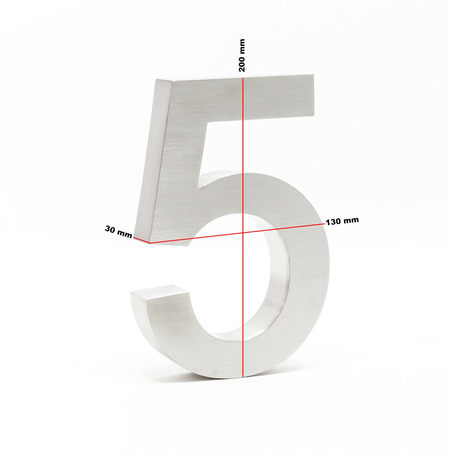 Plaque numéro de maison "5" acier fin 20 cm arial 3D matériel de montage 16_0001429