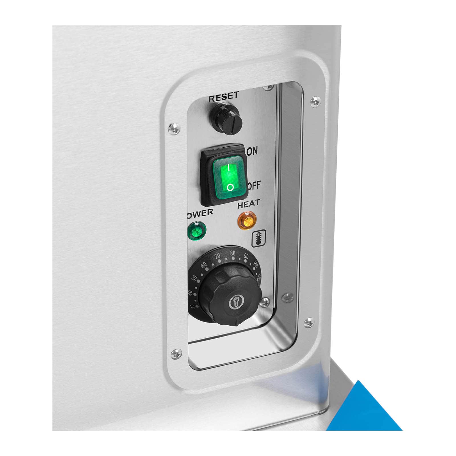 Un bouton marche/arrêt vient compléter les éléments de commande à la fois simples et fiables du bac à échauder les volailles.