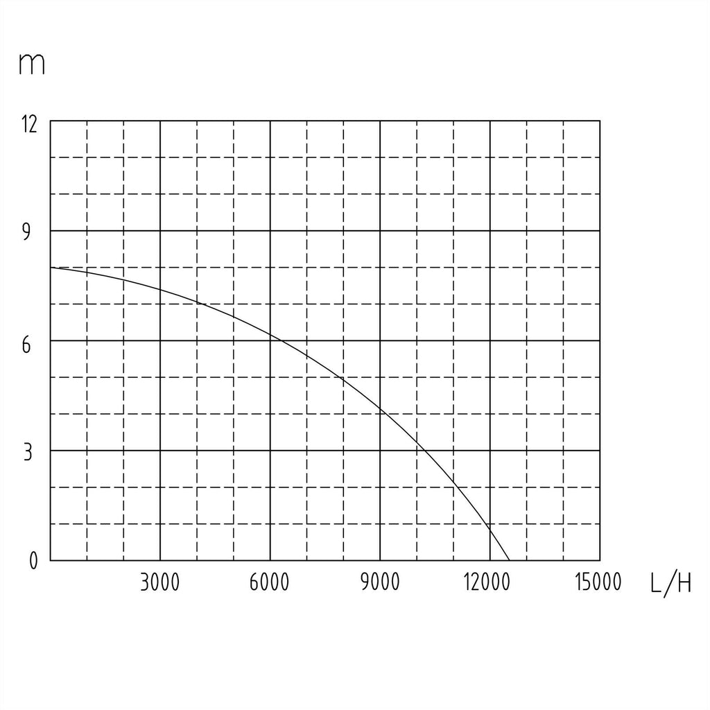 Avec une puissance de 750 watts, la pompe peut débiter chaque heure jusqu’à 12500 litres.