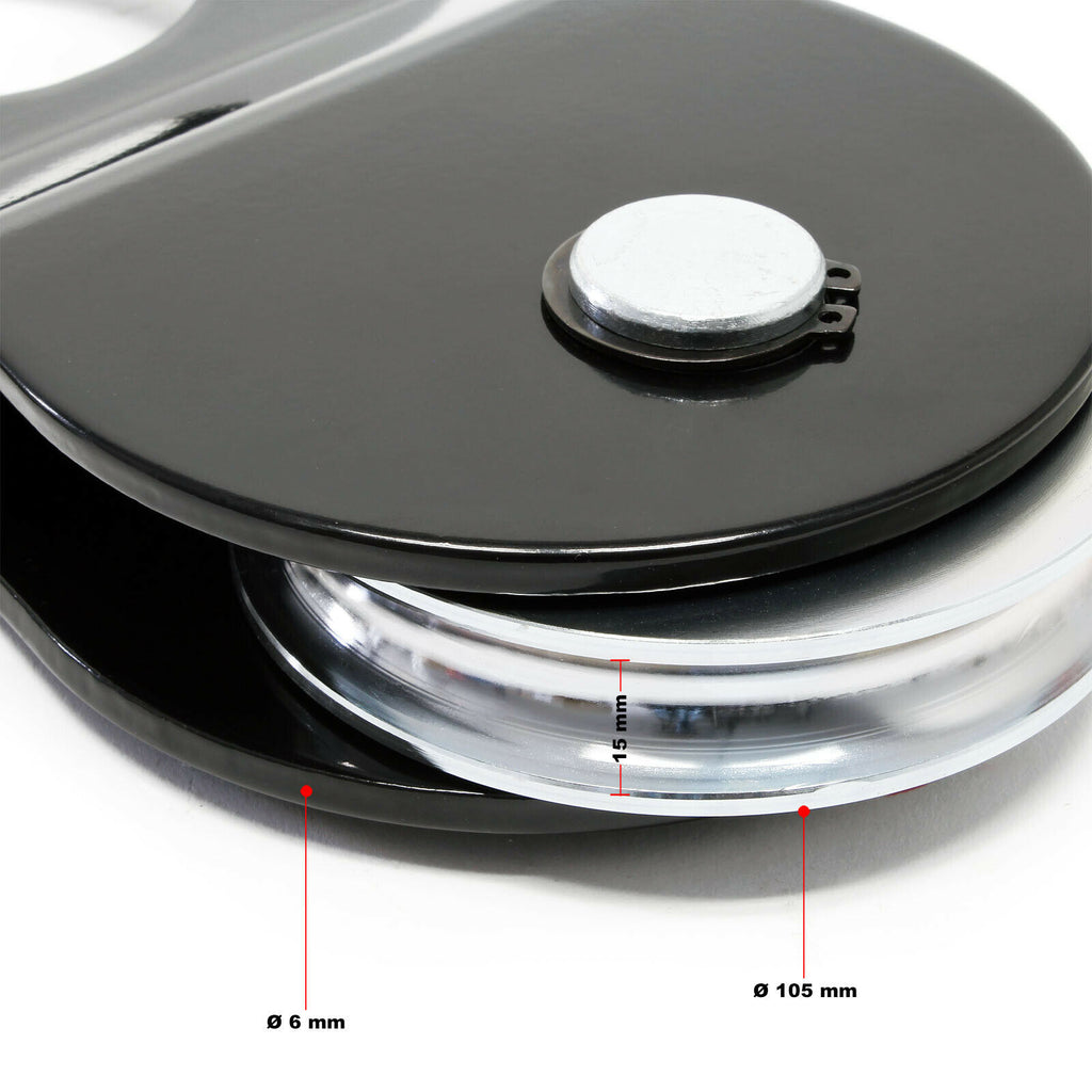Le bloc poulie pour treuil qui permet de doubler la force de traction d’un treuil, de dévier la force et de la répartir de sorte à ce qu’elle s’adapte facilement aux conditions de travail sur place.
