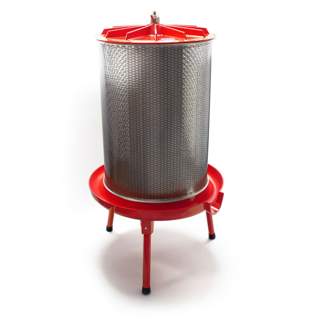 Sous l’effet de la forte pression, vous obtiendrez une récolte de jus très importante, même si la cage du pressoir n’est qu’à moitié remplie.
