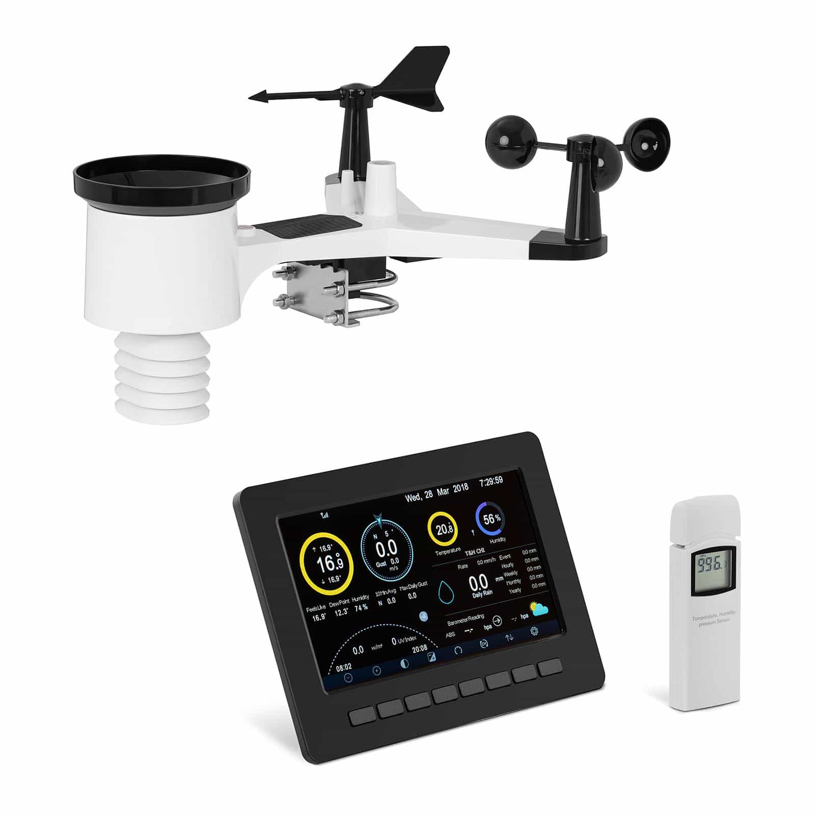 Solution complète – station externe qui mesure la température, l'humidité, les précipitations, la force et la direction du vent, le rayonnement UV et la luminosité