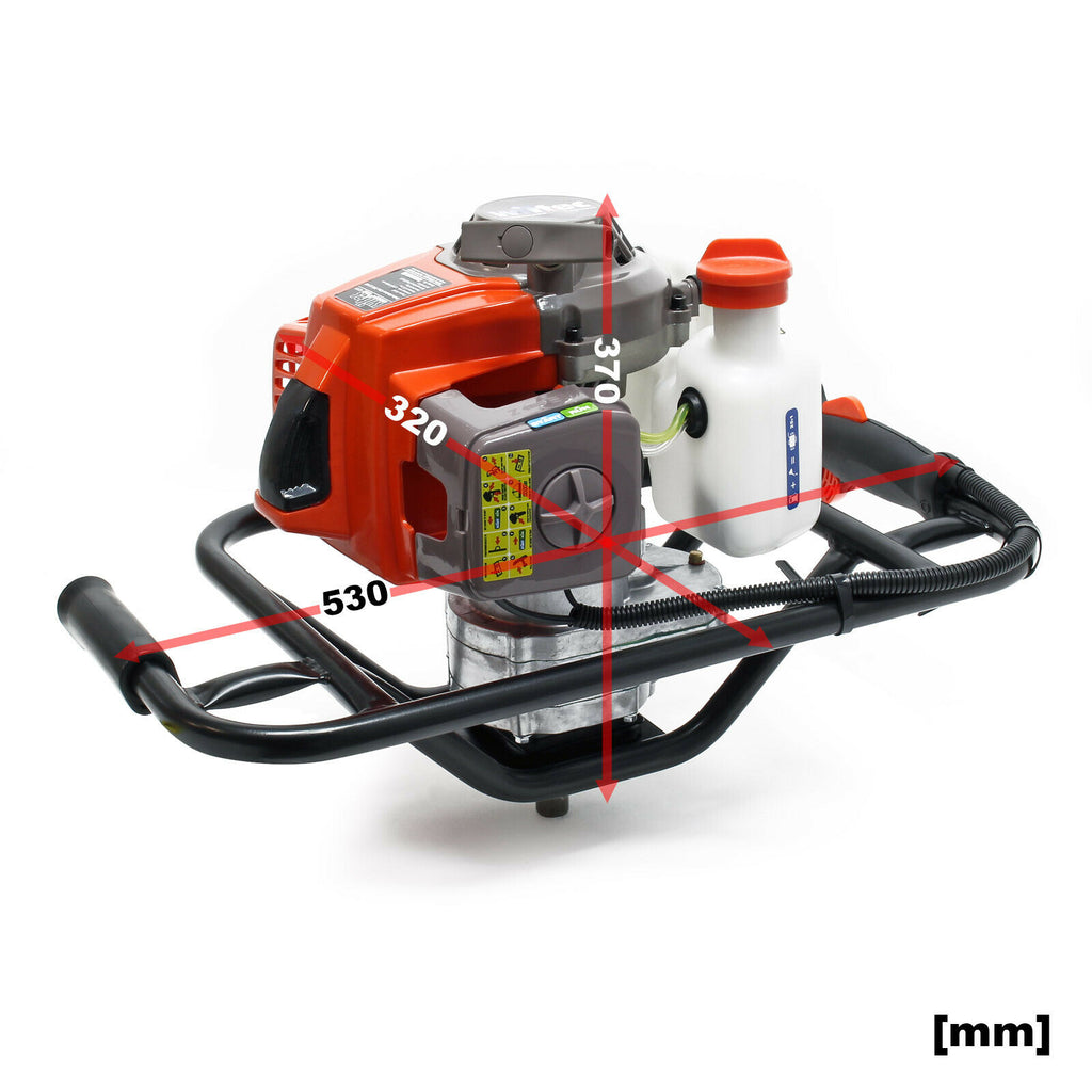 La tarière, si vous l’utilisez avec le foret approprié, est équipée d’un moteur de 3 CV d’une cylindrée de 63,3ccm, assez puissant, jusqu’à 183 tr/min, pour réaliser des forages de manière précise et propre.
