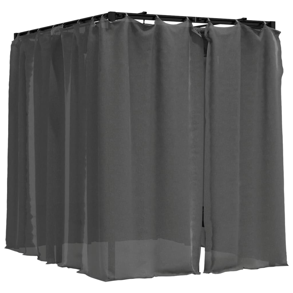 Transat chaise longue bain de soleil lit de jardin terrasse meuble d'extérieur double avec rideaux latéraux et supérieurs 02_0012740